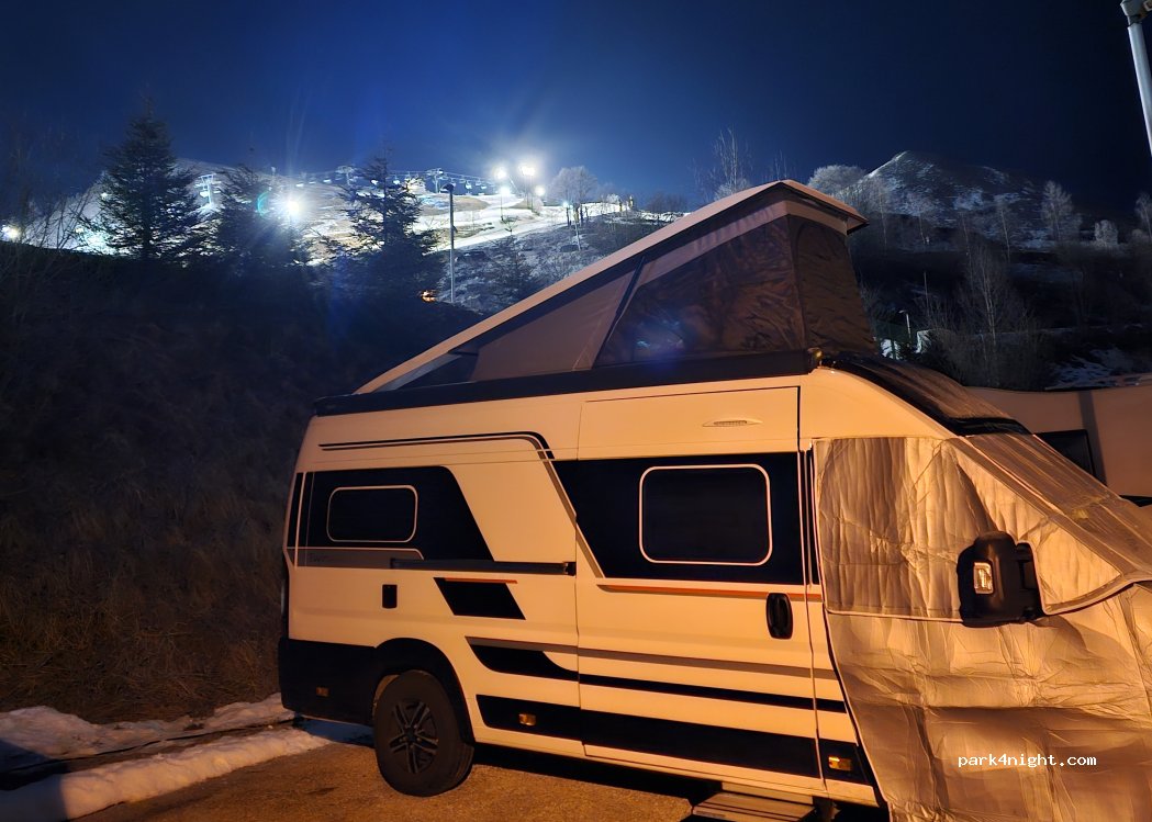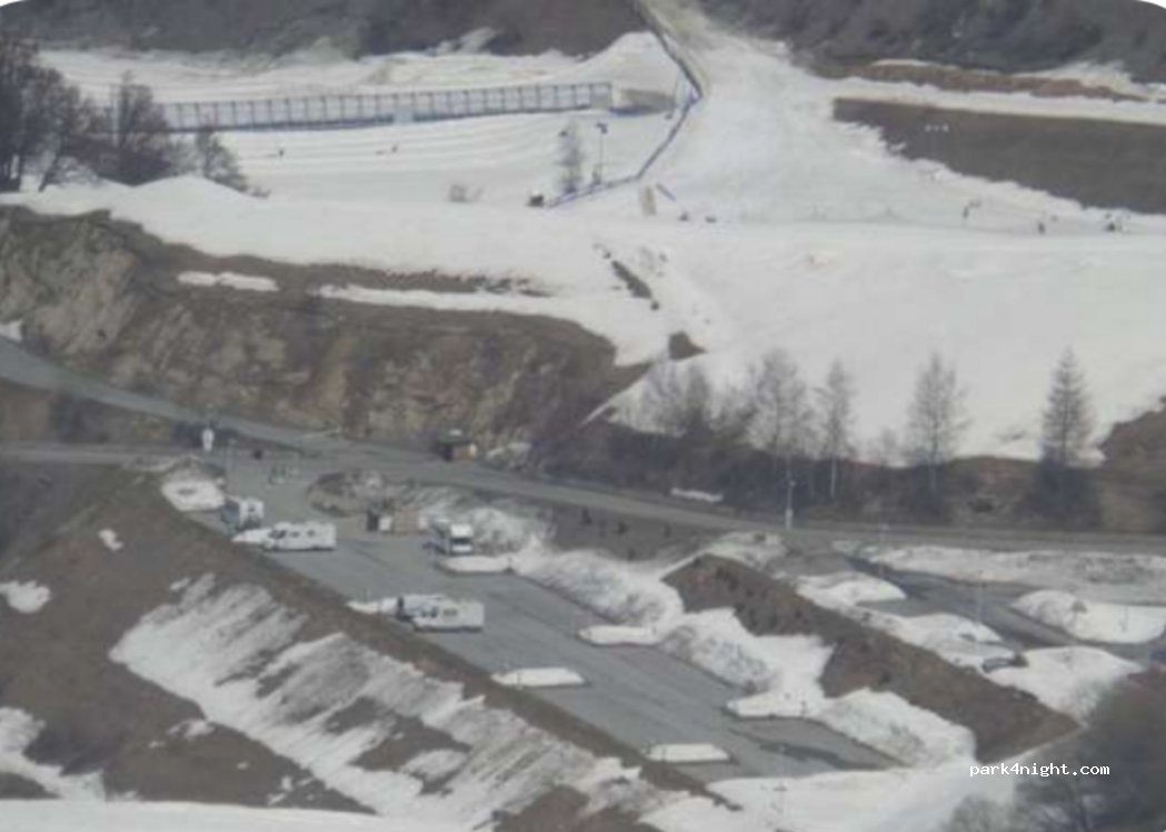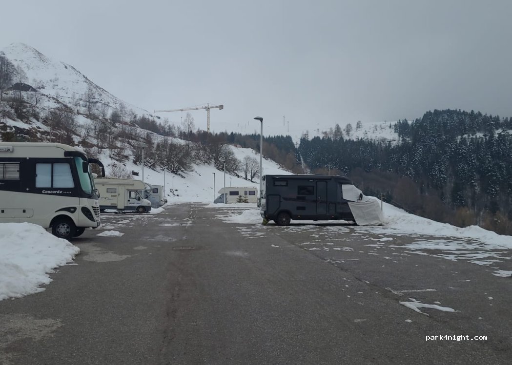 Area camper spaziosa e spartana. Possibilità di svuotamento grigie e nere. Corrente compresa nel prezzo di 1 euro all'ora. Comoda posizione per le piste da sci (passando dietro il condominio di fronte all'entrata dell'area).