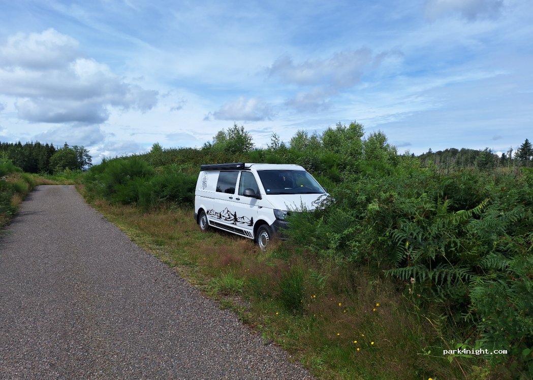 Place herbeuse le long d'une minuscule route pour 1 van. aucune circulation, calme absolu et vue sur les Vosges.
