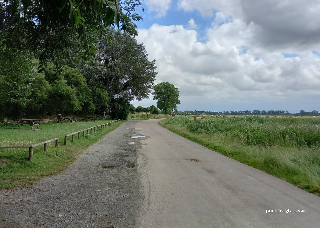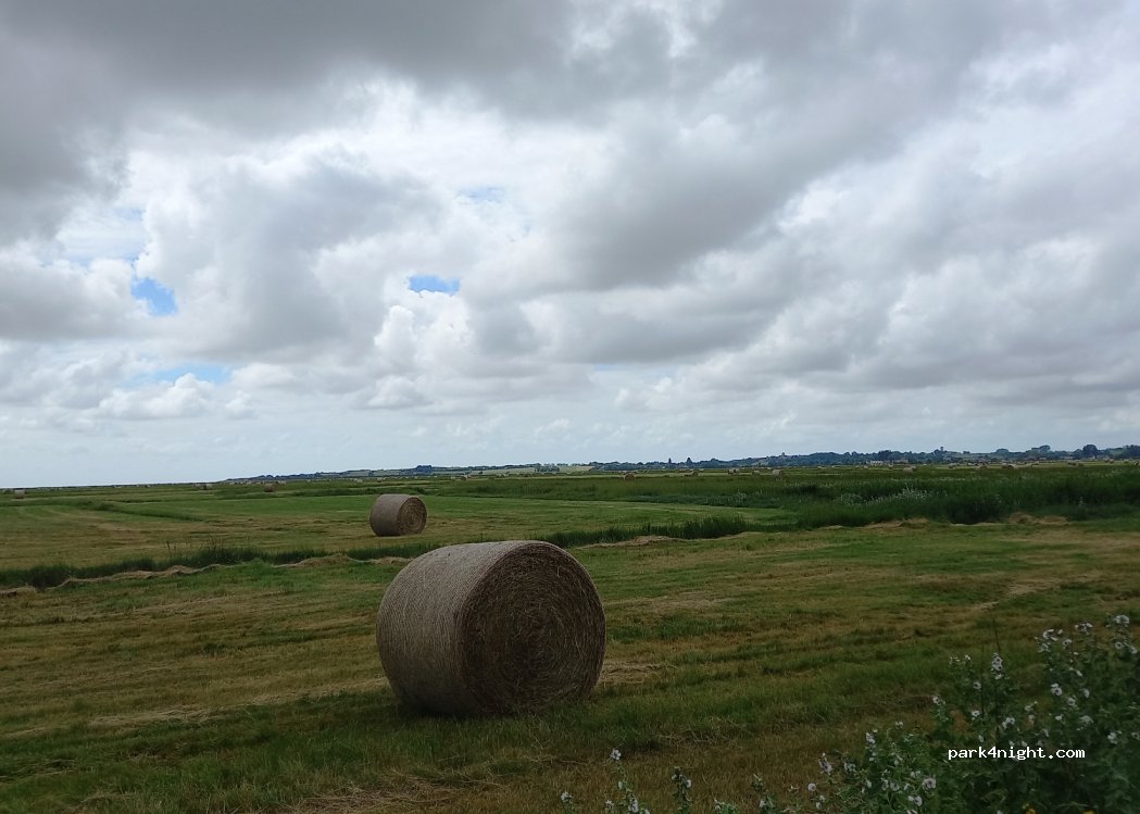 Parking pour 4-5 mobil-homes le long d'une aire de pique-nique avec vue sur le Mont Saint Michel. Immenses pâturages ouverts et pelouses juste devant, idéal pour une promenade avec le chien en laisse (les moutons courent en liberté !). Aérodrome à environ 250 m avec de nombreux petits avions et autogires. Toilettes publiques signalées à environ 300 m. Les nuitées ne sont pas explicitement interdites.