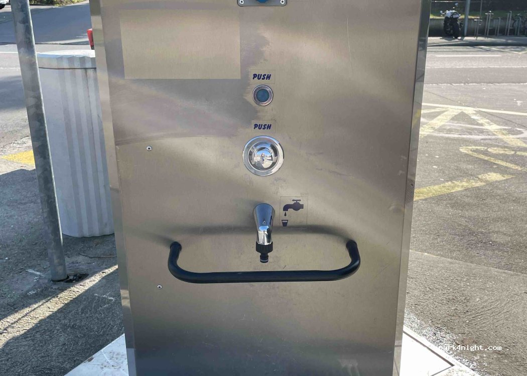 Le remplissage en eau était gratuit malgré l'affichage qui disait le contraire (je n'ai pas essayé l'électricité). Je ne me suis pas arrêtée plus longtemps mais je n'aurais pas dormi à cet endroit.