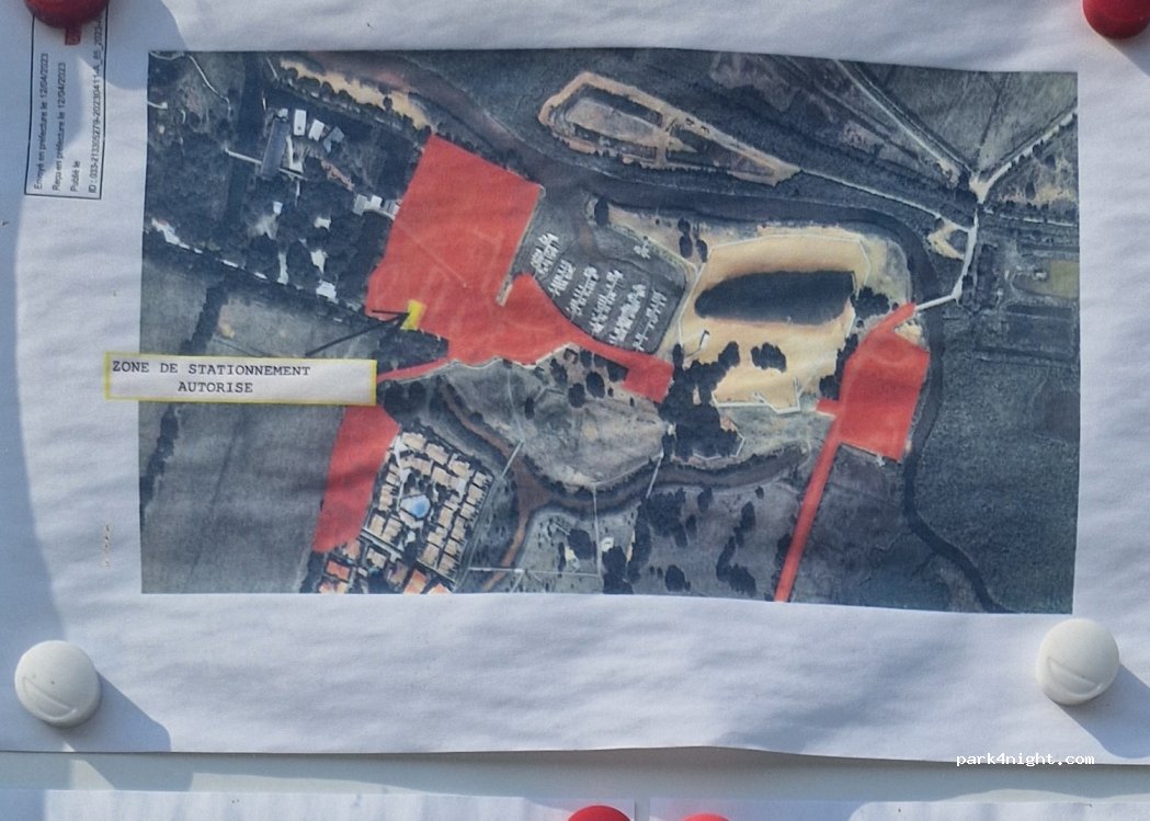Merci de suivre les panneaux blancs « Area Motorhome » indiquant l’entrée secondaire par le chemin du Garde.