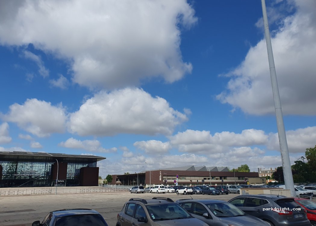 très grand parking bien situé a proximité de la cité pour visiter. Aucun problème pour stationner le dimanche de jour jusqu'à 22h.