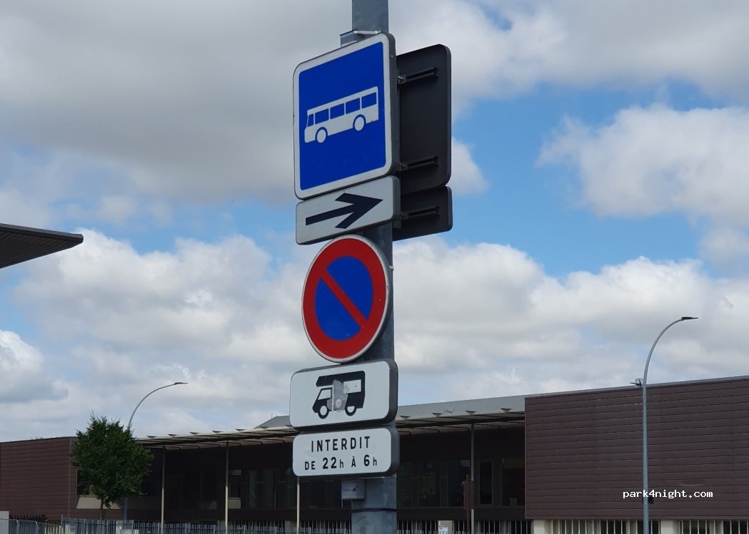 Central parking lot near the city center. Parking prohibited for motorhomes between 10 p.m. and 6 a.m.