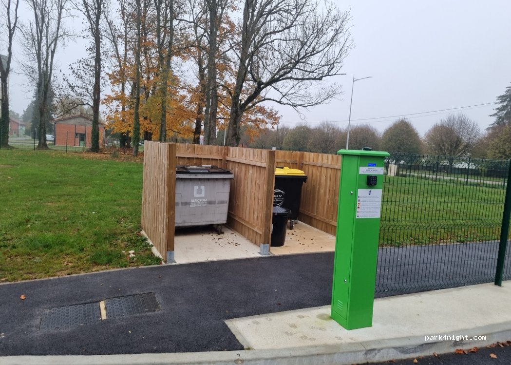 Bonjour aire agréable et très bien. attention il manque des pavés au sol et qui risque la chute et il manque toilettes et douche pour le prix !!! si la personne ayant perdu une clef de contact avec un petit chien métallique, je l'ai récupéré!!!!