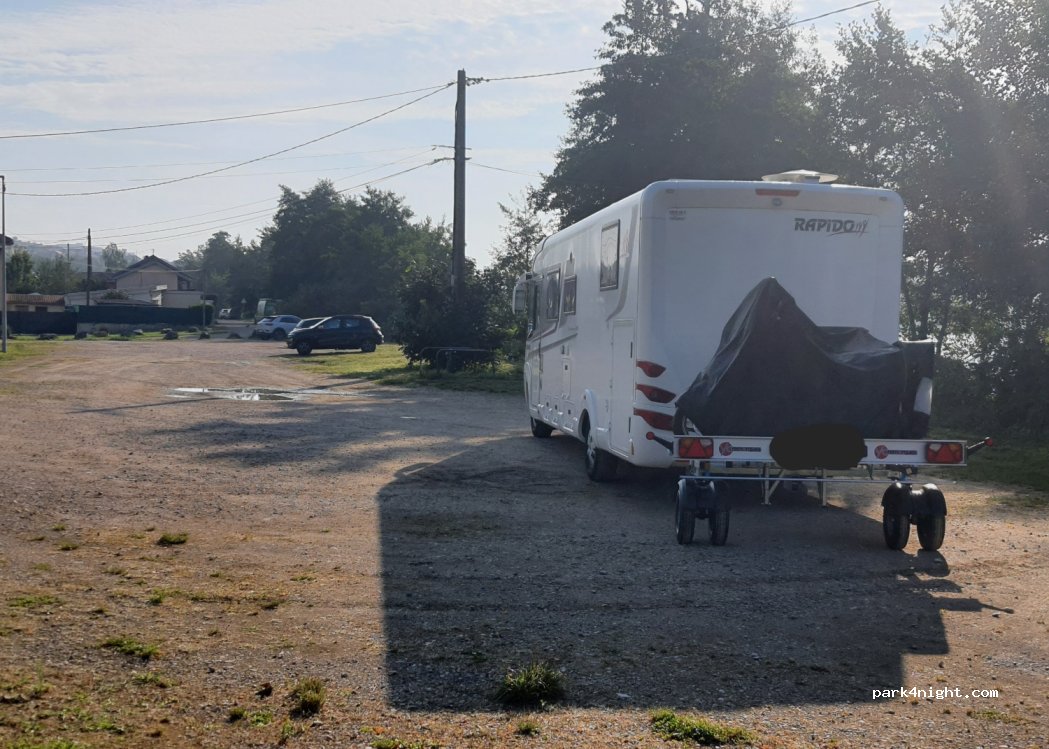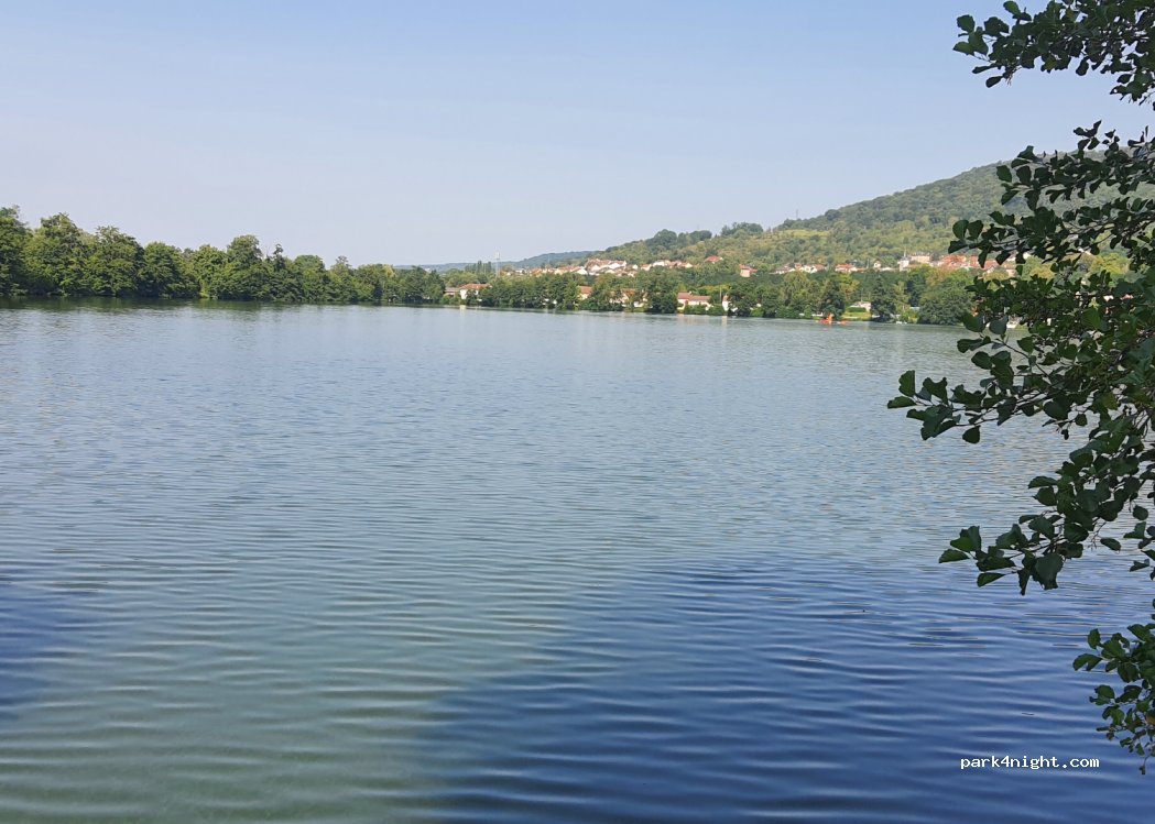 Vaste parking plat au bord d'un lac, nuit très calme. Aire de loisir a proximité.