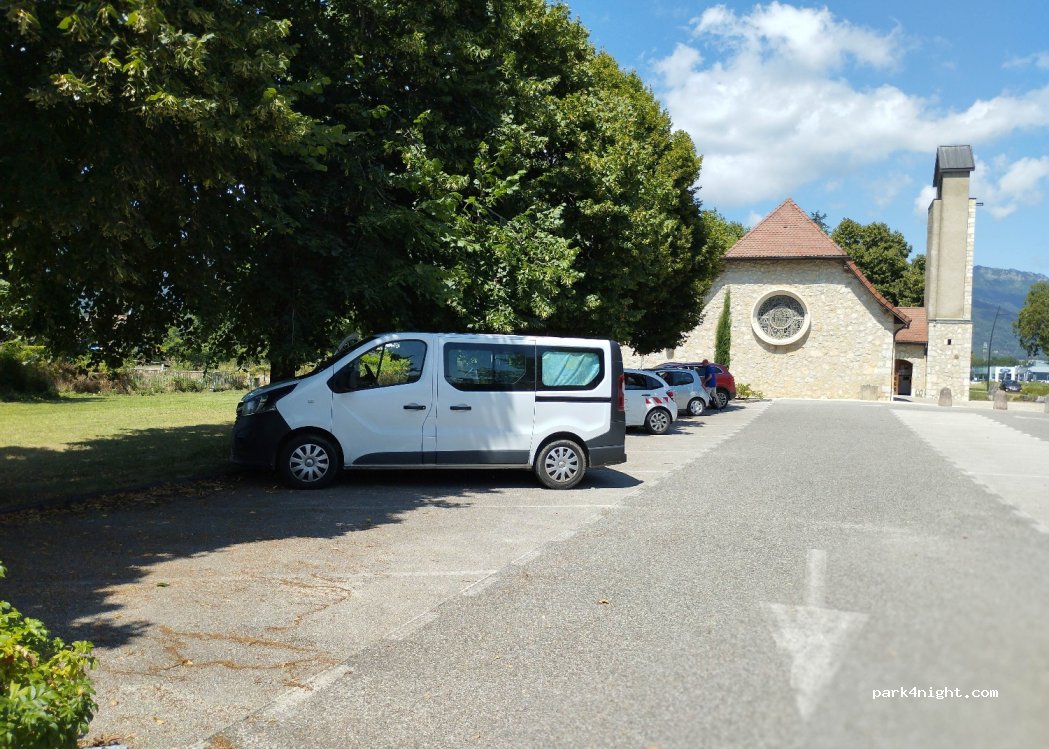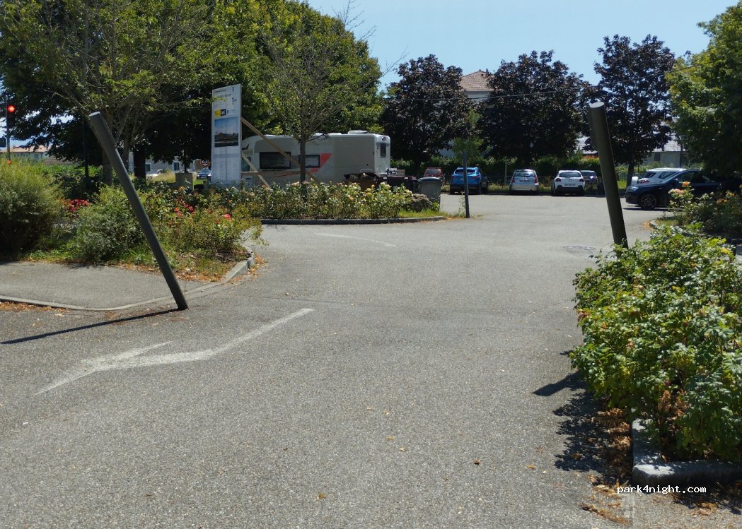 Parking de nuit. il y a un autre parking derrière ou la barrière est levée. plus calme et loin de la route.