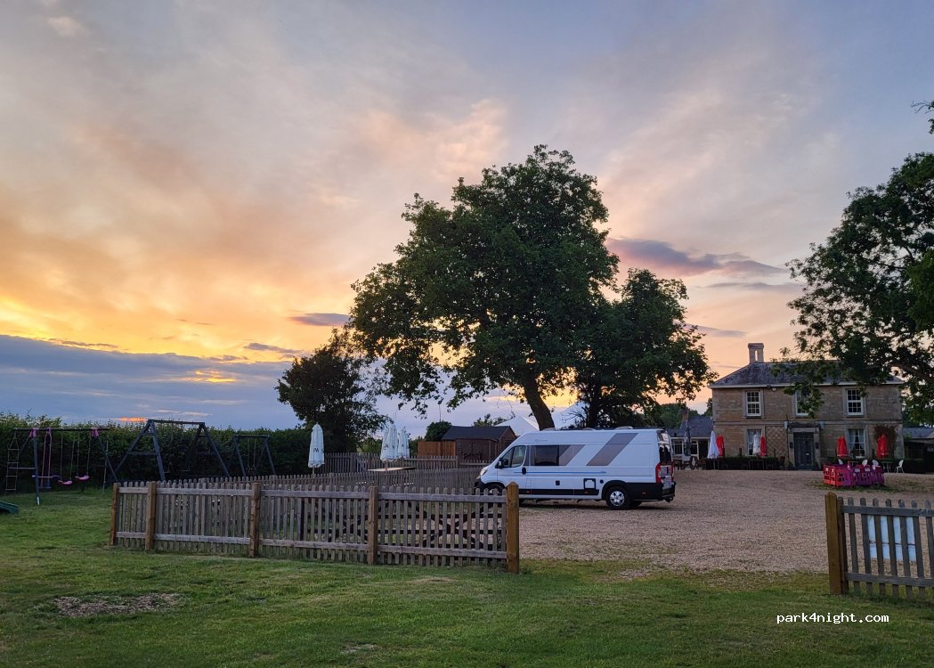 We stopped here on our way from Scotland to Dover and we were glad we did. We had a lovely meal (outside), ordered a tasty Malbec and had a lovely quiet night. The food was very good and reasonably priced. The staff is very friendly and there’s a great atmosphere. We stayed on the grass, but you can also park on the gravel. Really recommended if you are in the area and this is worth a stop!