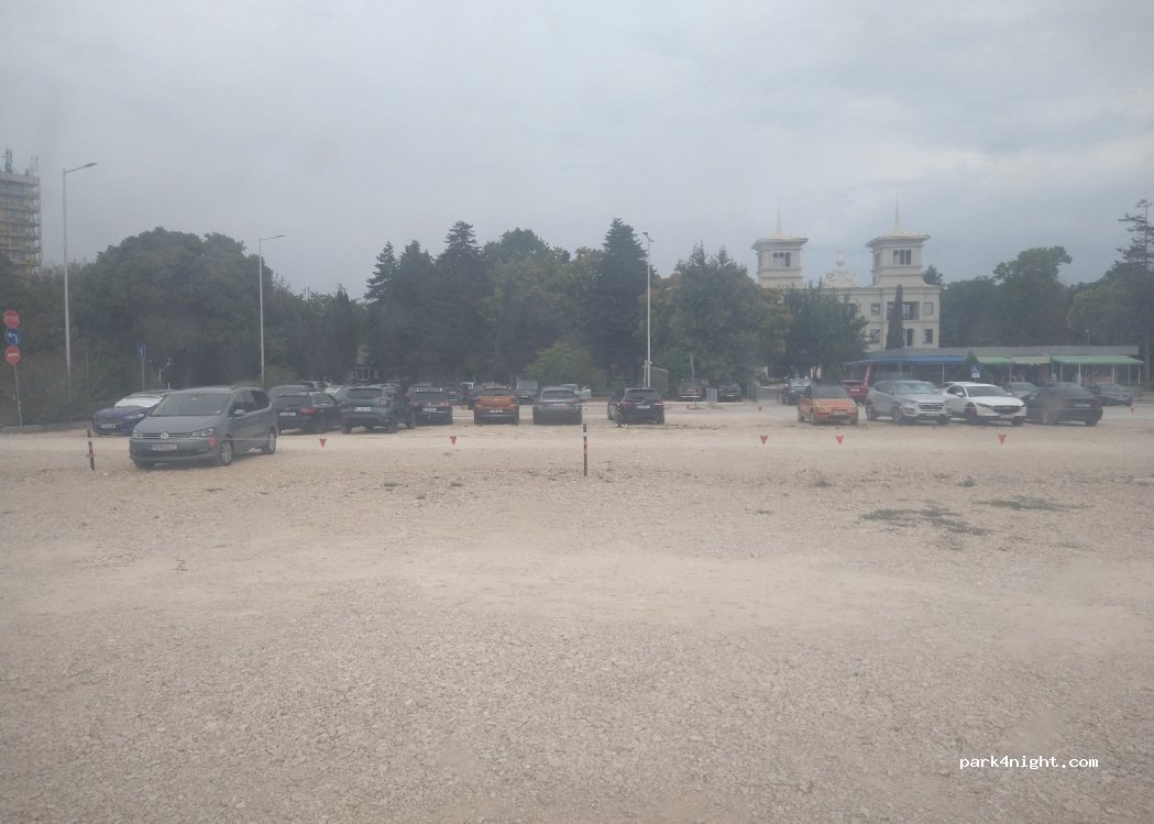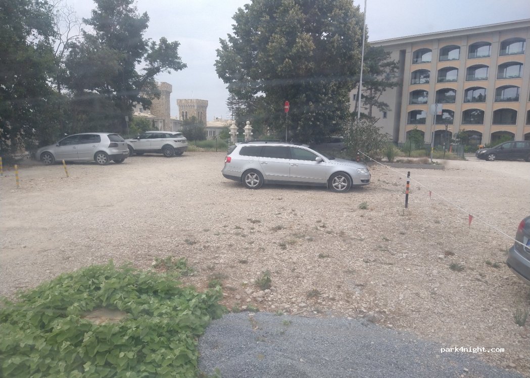 Riesiger kostenpflichtiger Parkplatz direkt am Strand, an einem wunderschönen Strand, kostet 7 € für 24 Stunden. Nachts sehr ruhig und gut beleuchtet – ich habe mich hier sicher gefühlt. Umgeben von kleinen Restaurants und einigen Luxushotels – es ist eine saubere und ruhige Gegend. Sehr leicht zu erreichen. Der Parkplatz ist unbewacht, aber die Gegend ist sehr sicher. Das Geld ist es wert.