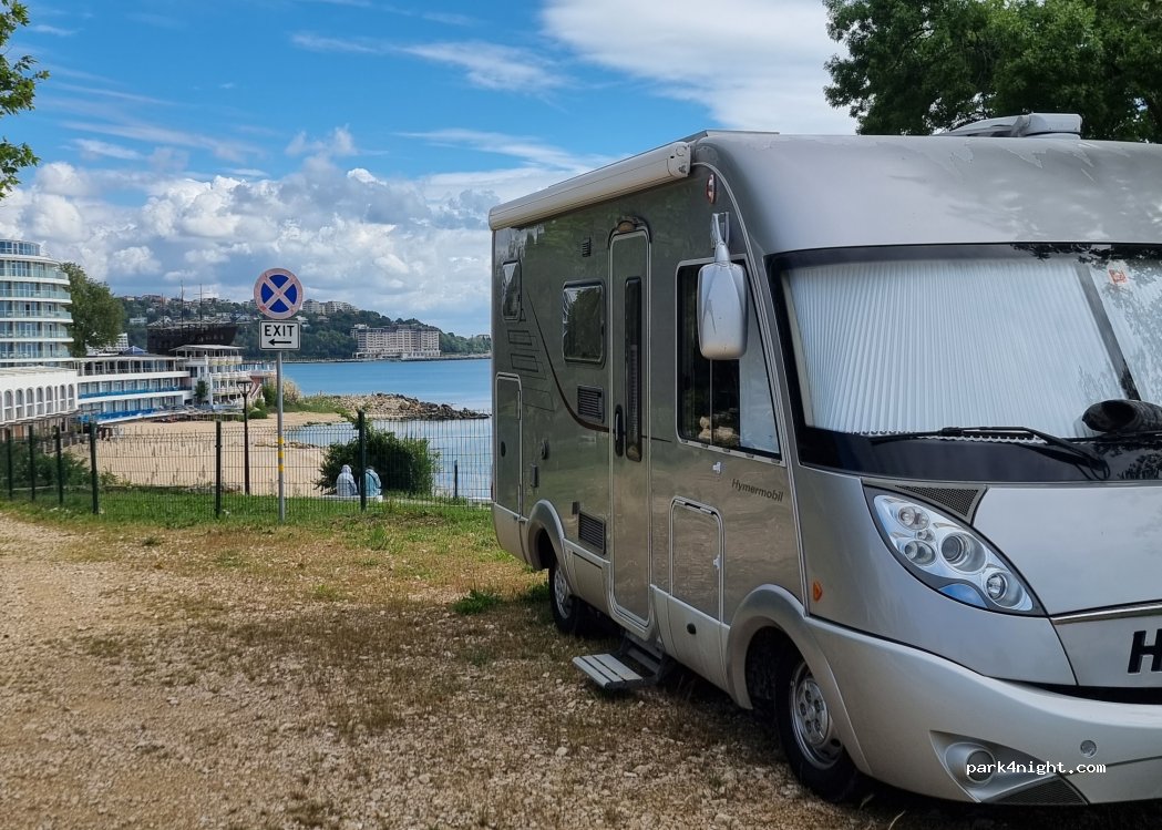 klidne parkoviste u plaze..cena 10 Euro/24 hodin.Fast food pizza stanek hned u nas, dalsi bary, restaurace vedle. Za nas spokojenost.