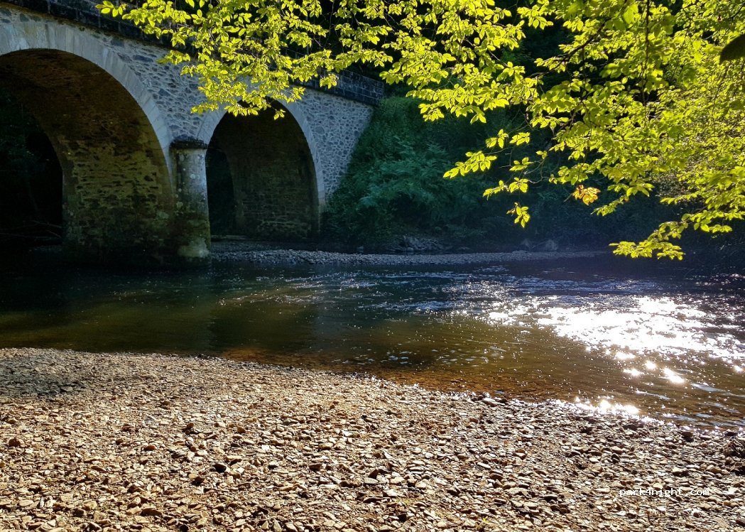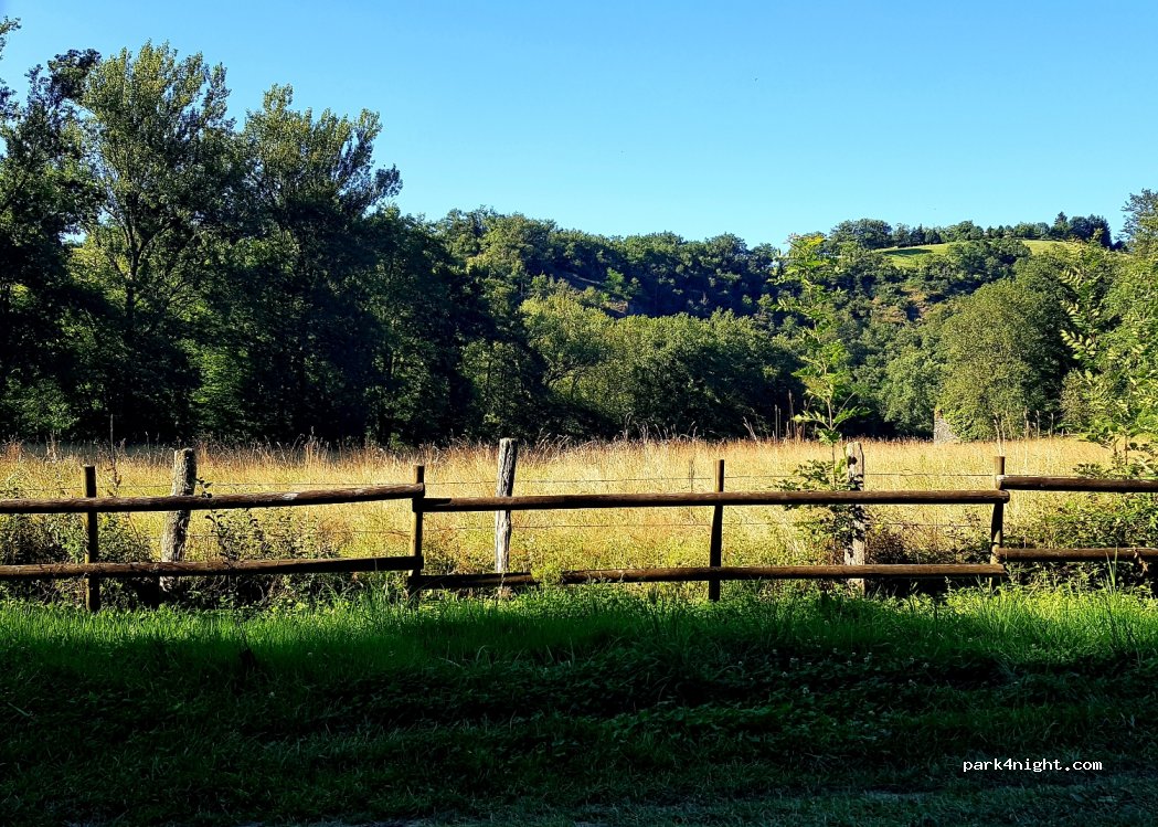 Kleiner, sehr angenehmer und schattiger Parkplatz am Rande eines kleinen Flusses „le Célé“ mit Picknicktisch und Grill vorhanden. Zufahrt mit Wohnmobilen und Transportern nicht möglich, begrenzt auf 1,95 m. Ideal für Autos mit Dachzelt.
