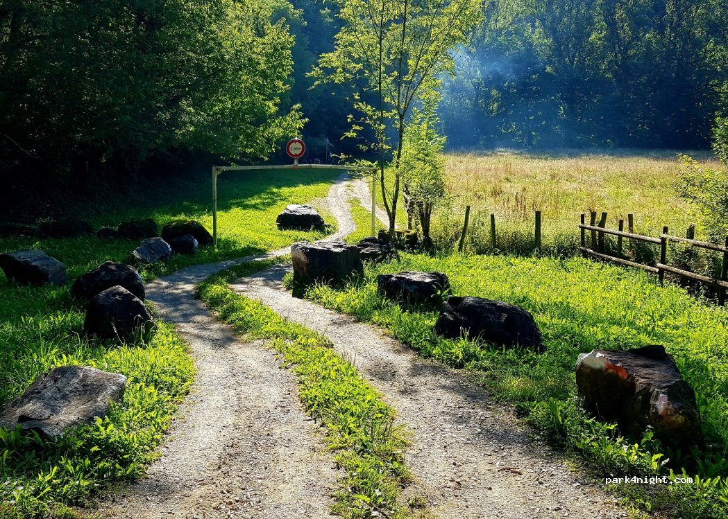 endroit très calme en bordure de rivière et à l'écart de la route départementale. Attention : une chicane a été mise en place avec de grosses roches. passage très étroit (suis rentré avec un trafic mais vraiment très très juste).