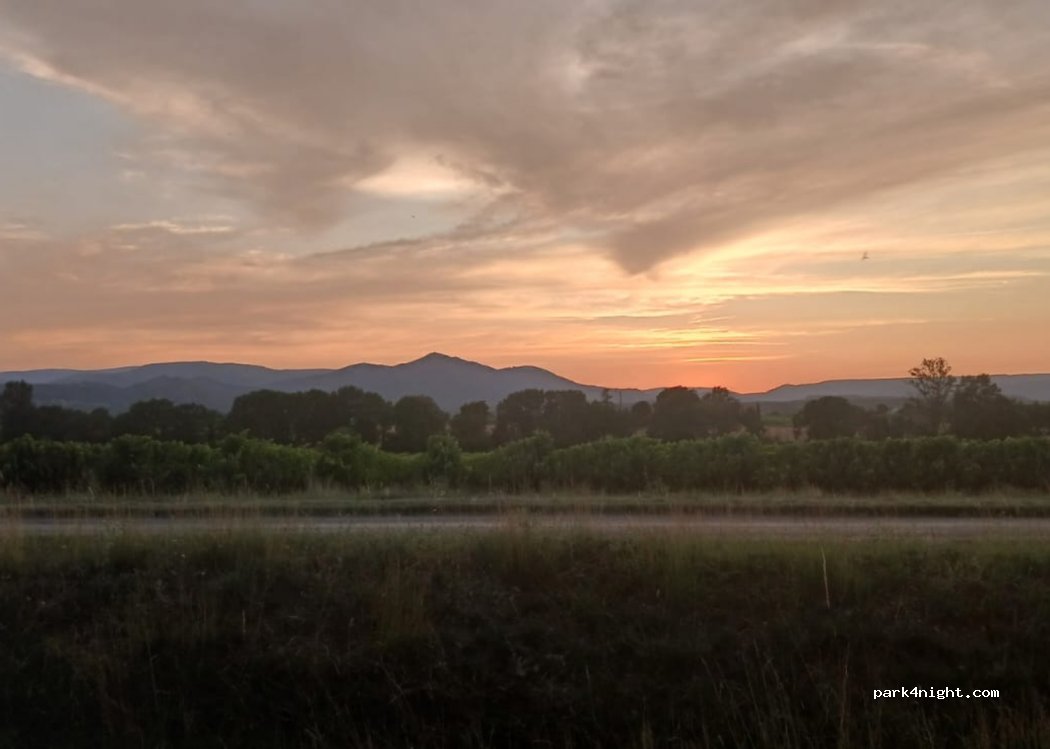 Park or spend the night in complete peace on flat ground. Small country road nearby to connect two villages but absolutely not harmful.
