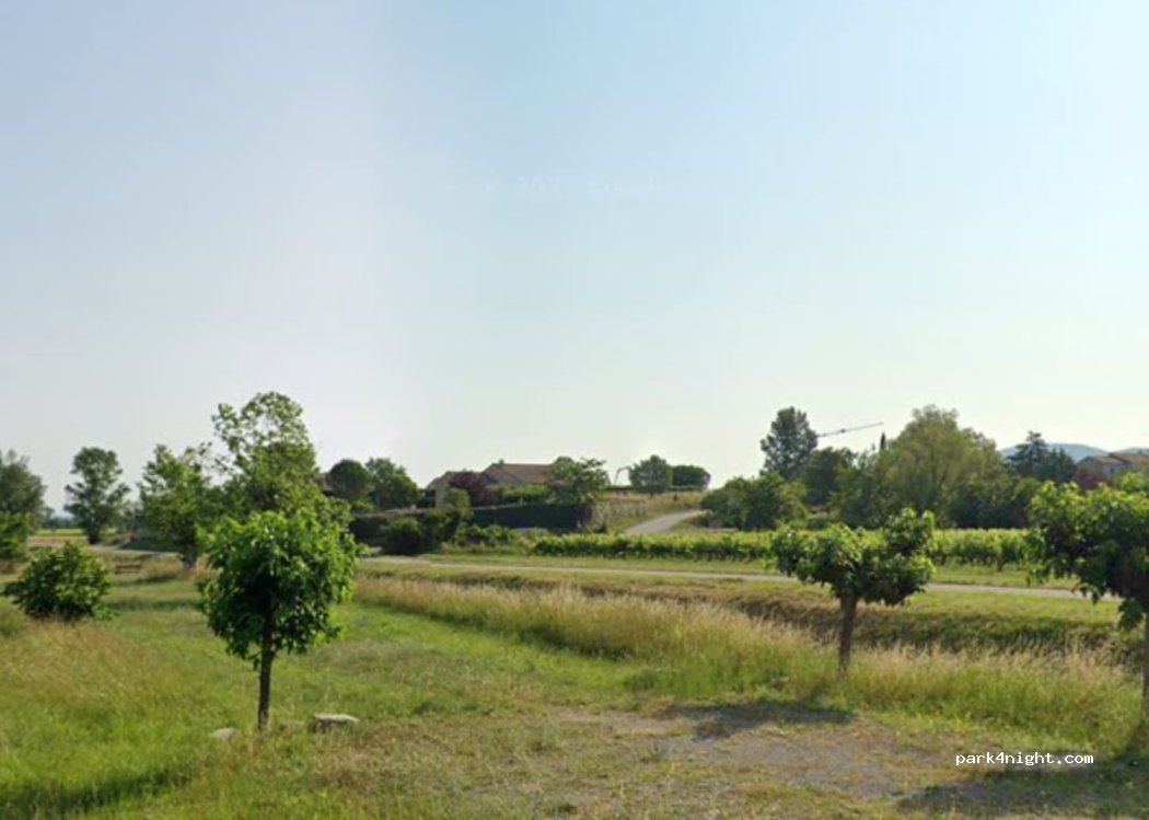 Stationnez ou passez la nuit en toute tranquillité sur un terrain plat. Petite route de campagne a proximité pour relier deux villages mais absolument pas nuisible.