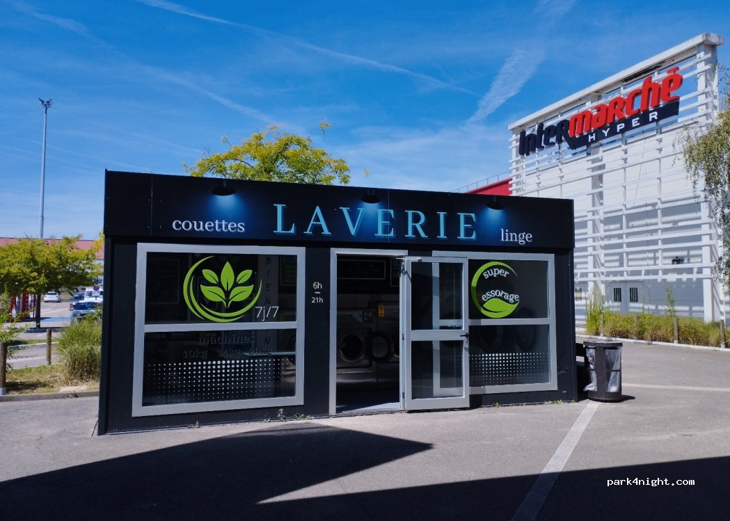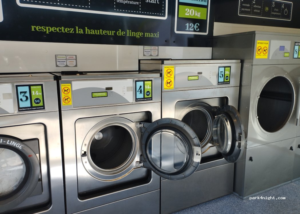 Juste à côté de l'hypermarché, une laverie automatique récente et bien tenue. 2 machines 10kg, 2 machines 14kg et une de 20kg et 2 grand sèches-linge. Paiement carte où espece.