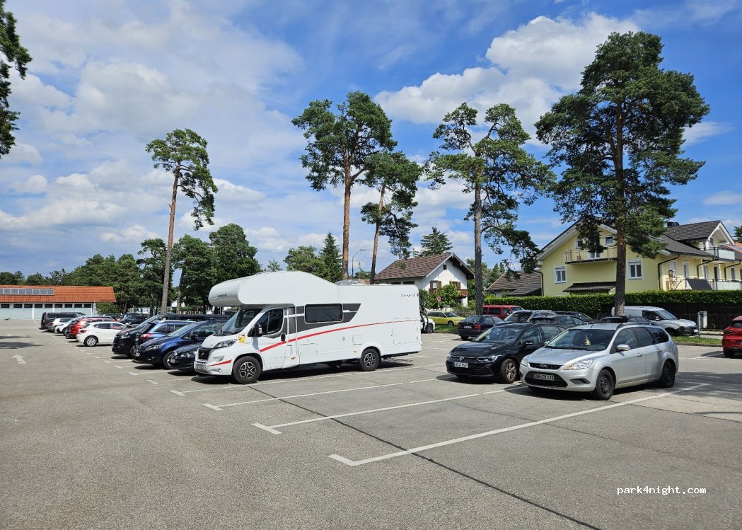 Excellent endroit pour passer la nuit. Très calme, surface bitumée et quasi plane. Aucun service mais commerces non loin de ce grand parking. Désert la nuit mais ce mercredi matin, le parking à été complètement envahi par des familles avec enfants se rendant au parc de loisirs.