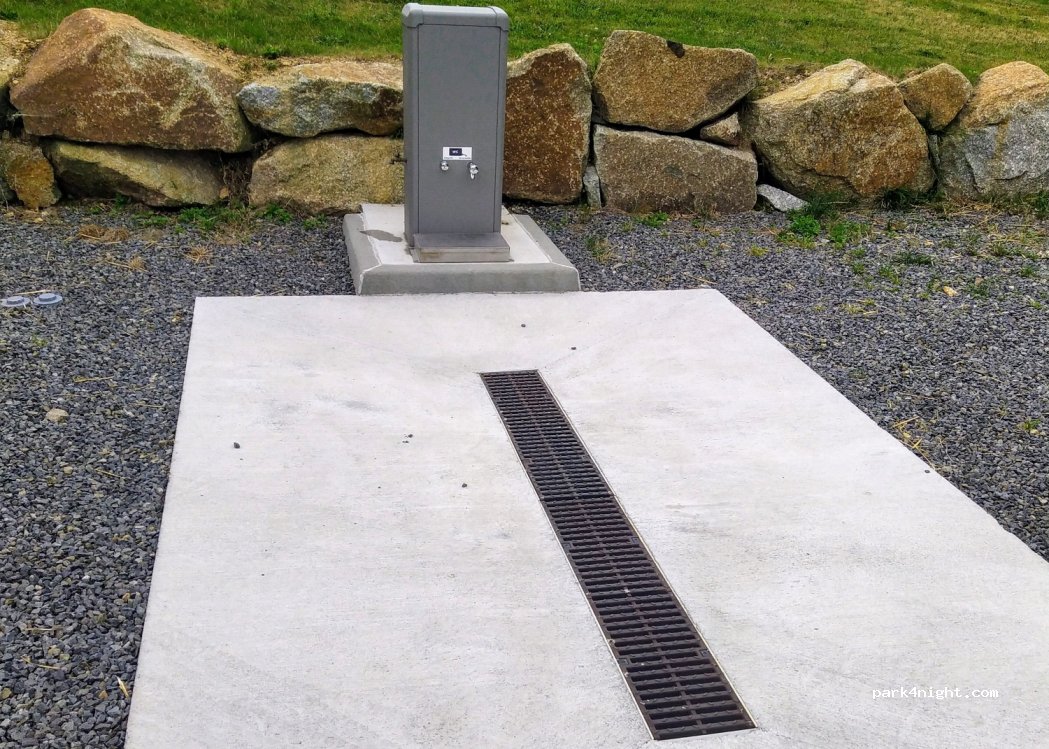 super emplacement avec eau, vidange, et même les toilettes. Nous sommes arrivés vers 23h00 mais le lendemain matin, belle découverte.