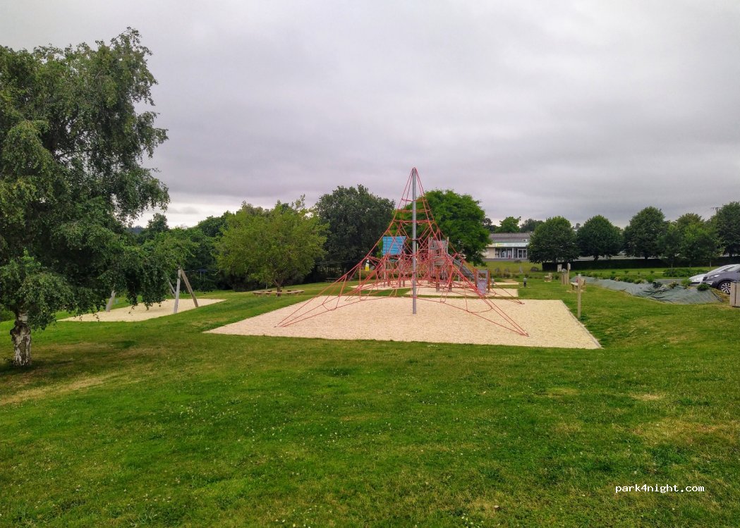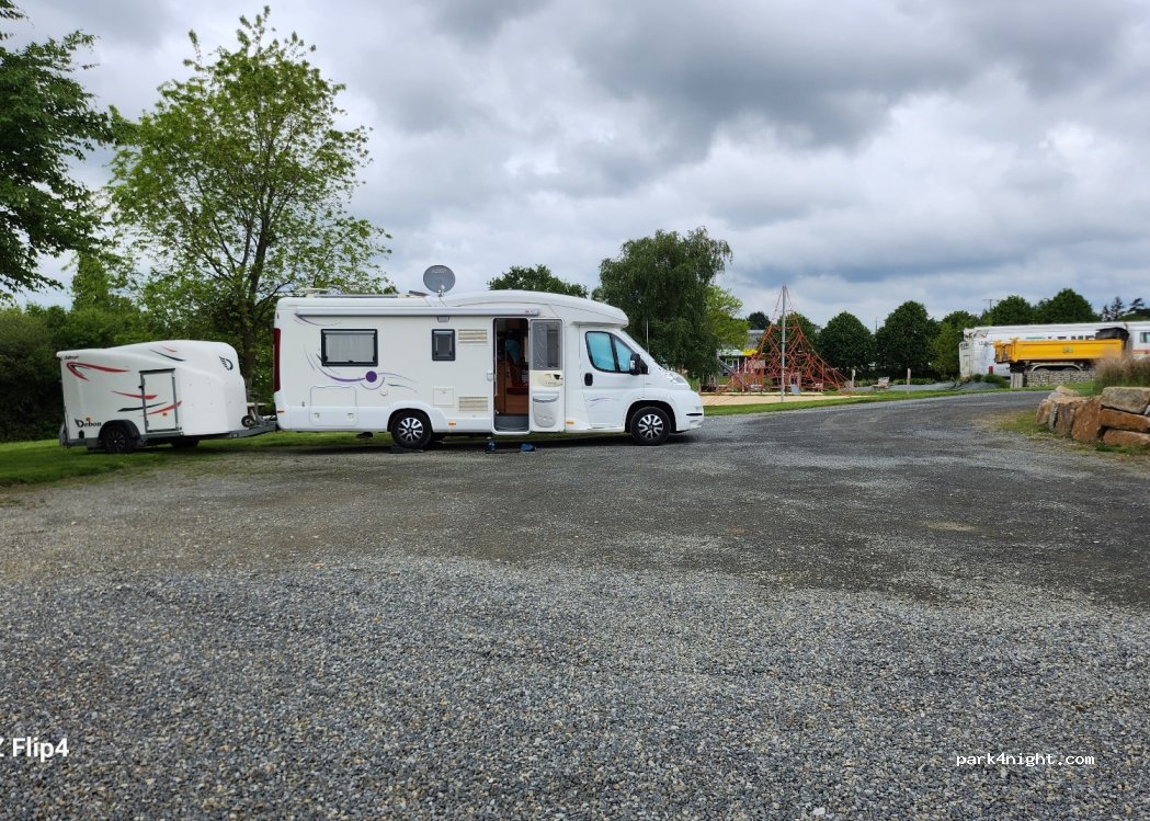 Brand new ! Just behind the town hall, very clean and pretty landscaped park, picnic table, games for children. Bravo to the town hall for the welcome. Maximum 4 places, but car parking right next door authorized at the camper van.