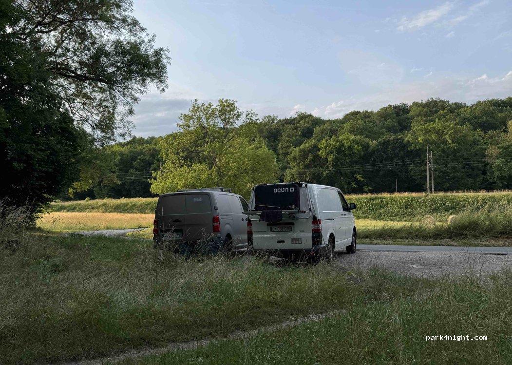 Super emplacement dans la nature pour un van. Il y a la petite route juste derrière avec le parking et la ligne de train mais c'est pourtant bien plus calme que ça en a l'air et on a bien dormi.