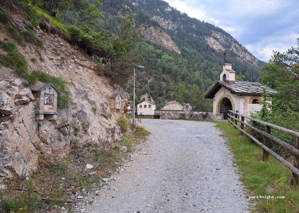 Ancienne route ac son tunnel désaffecté et sa chapelle ND des Pontis. 2 a 3 places pour fourgon pour la nuit.