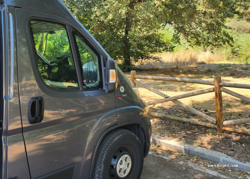 Pasamos la noche junto a otras autocaravanas y furgos y muy bien. Al lado está la carretera y por la noche es tranquila la zona, por la mañana hay mucho movimiento de coches y personas haciendo deporte.