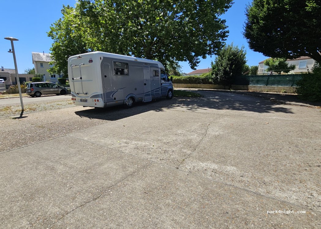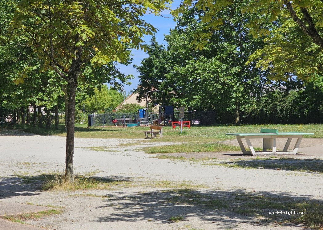 Ce parking à été modifié, en partie ombragé, très calme, pas beaucoup des voitures. L'air de jeu est juste à côté, en partie ombragé également. Stationnement la nuit doit être possible également cat pas d'interdiction.
