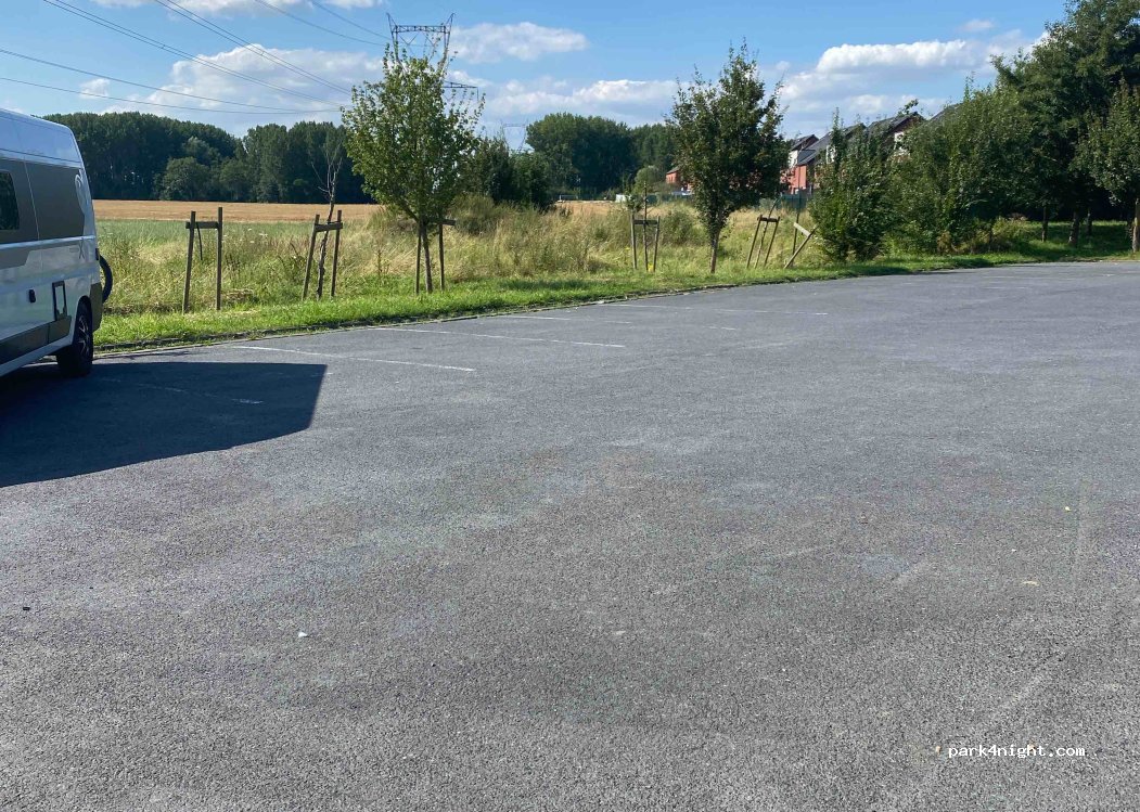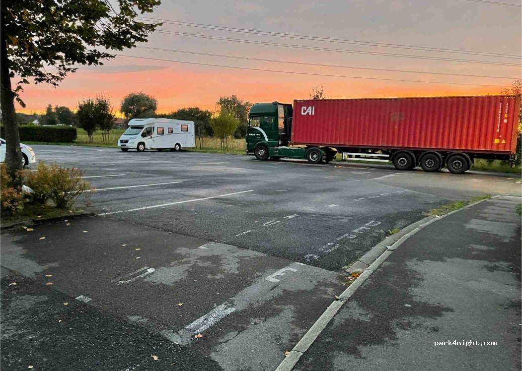 Nuit au calme sur cette aire de stationnement. Pas de service proposé. Du passage dans la journée. Friterie à l’entrée de la zone de stationnement.