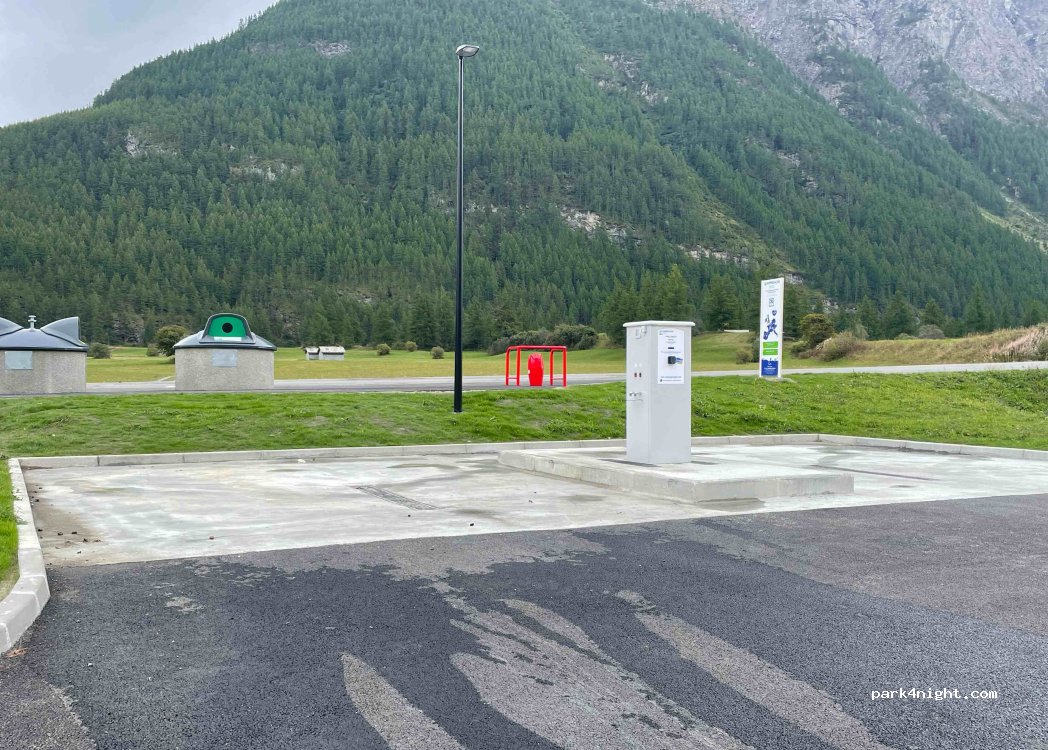 Aire toute neuve . Au milieu d'une réserve naturelle . A côté de tout les chemins de randonnée. A 1 km du centre bourg à pied. Merci à Bessans pour ce bel endroit