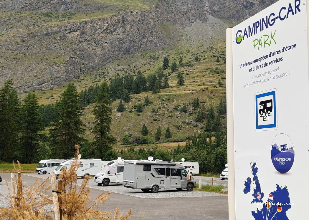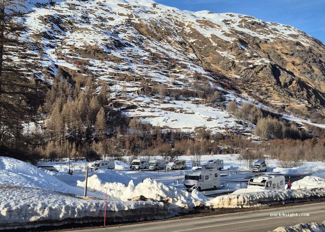 Belle aire de C.Car Park bien placée entre Bessans tout proche (qu’on peut facilement rejoindre à pied par un sentier) et le village de Bonneval/Arc, dans un cadre de haute montagne. Très bruyante en journée du fait de la proximité de la route mais calme la nuit.