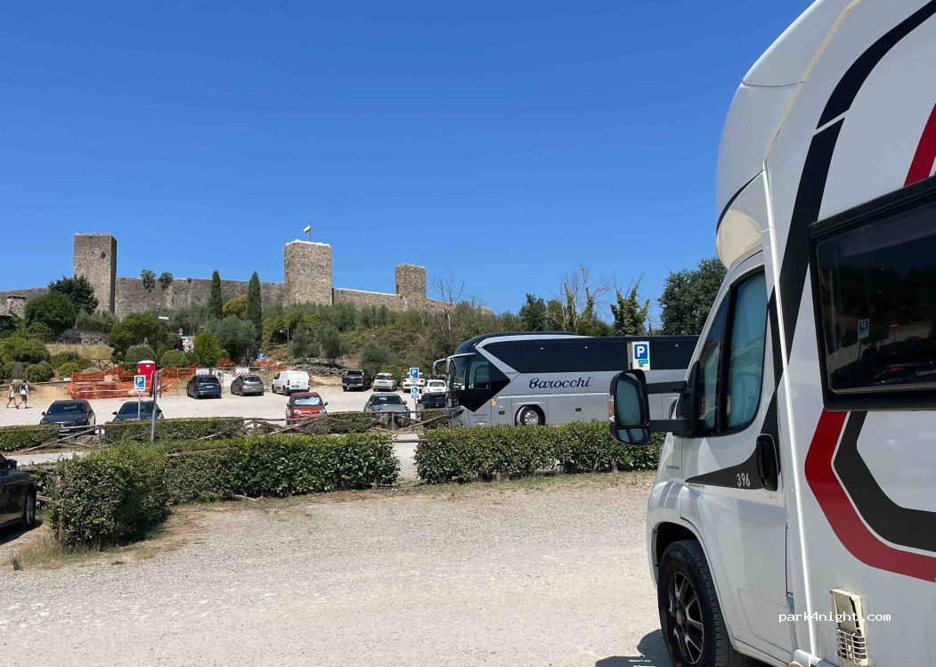 Good parking to visit Montereggioni during the day. One hour should be sufficient to walk around. Plenty of space even for large motorhomes