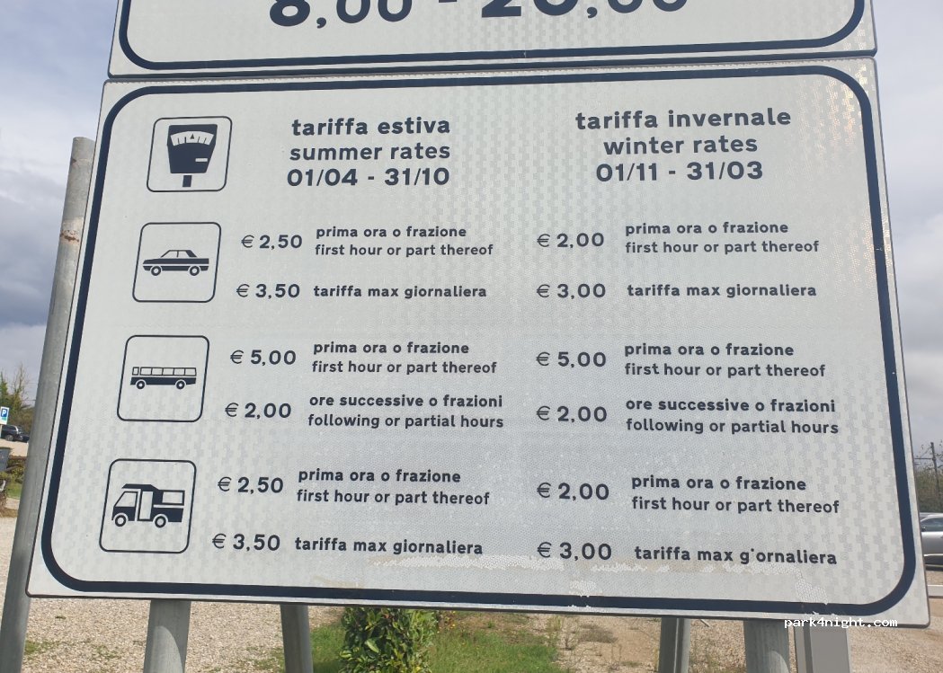 Ottimo parcheggio 1 minuto e sei in paese, parcheggi per camper un po’ in pendenza, casse automatiche 3,5€ tutto il giorno.