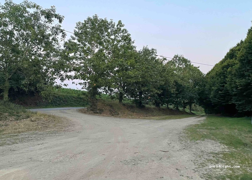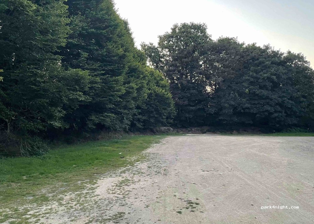 Parking lot with dirt road surrounded by trees. A pleasant park is nearby and a river called Ruisseau du Saint-Niel. 100 meters from the parking lot - free public toilet and also a restaurant