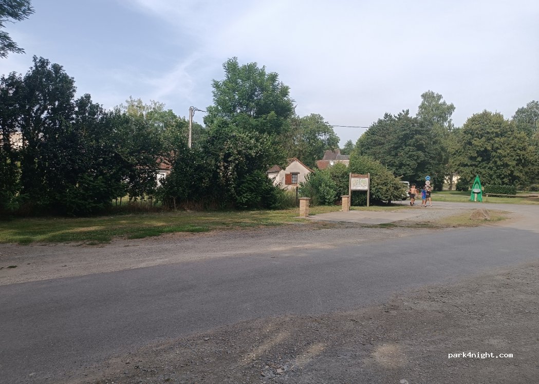 Nous y avons passé la nuit, endroit ombragé et très calme à 5 minutes du village. A 100 mètres de là en face du stade un grand parking dans l' herbe non ombragé .