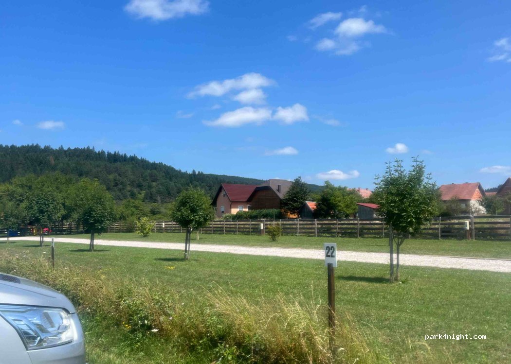 Bellissimo e tranquillissimo campeggio. Comode le piazzole con un bel prato verde, attacco corrente ed acqua, tutto molto curato e pulito. Bagni, docce con abbondante acqua anche molto calda, zona lavaggio stoviglie e biancheria. Gestore gentilissimo e molto disponibile. A circa 20 km dall’ingresso dei Laghi di Plitvice