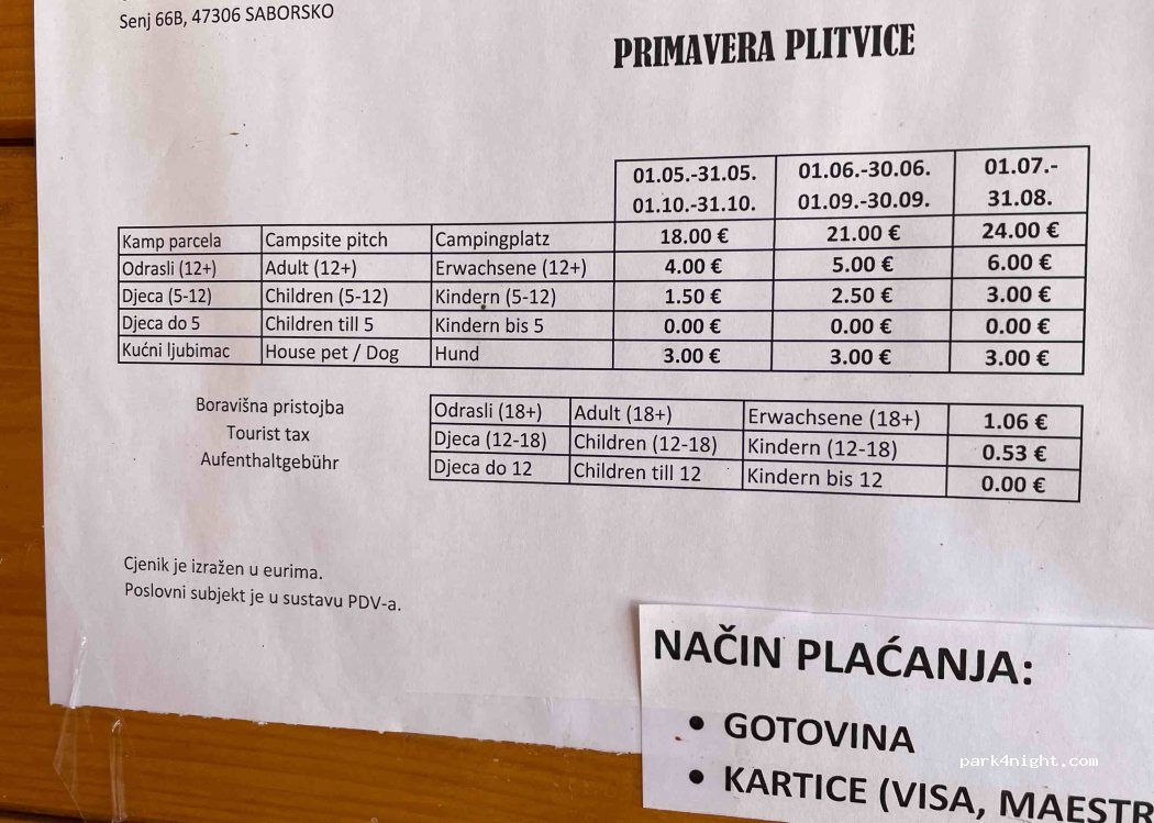 We stayed 2 nights at Camping Primavera Plitvice and loved it! A brand new, spotless campsite with spacious pitches, excellent facilities, and total peace. Surrounded by nature, insects are to be expected, but Ivan (covering for the owner) was incredibly friendly and even transported us to and from the National Park. Fantastic service – highly recommended!
