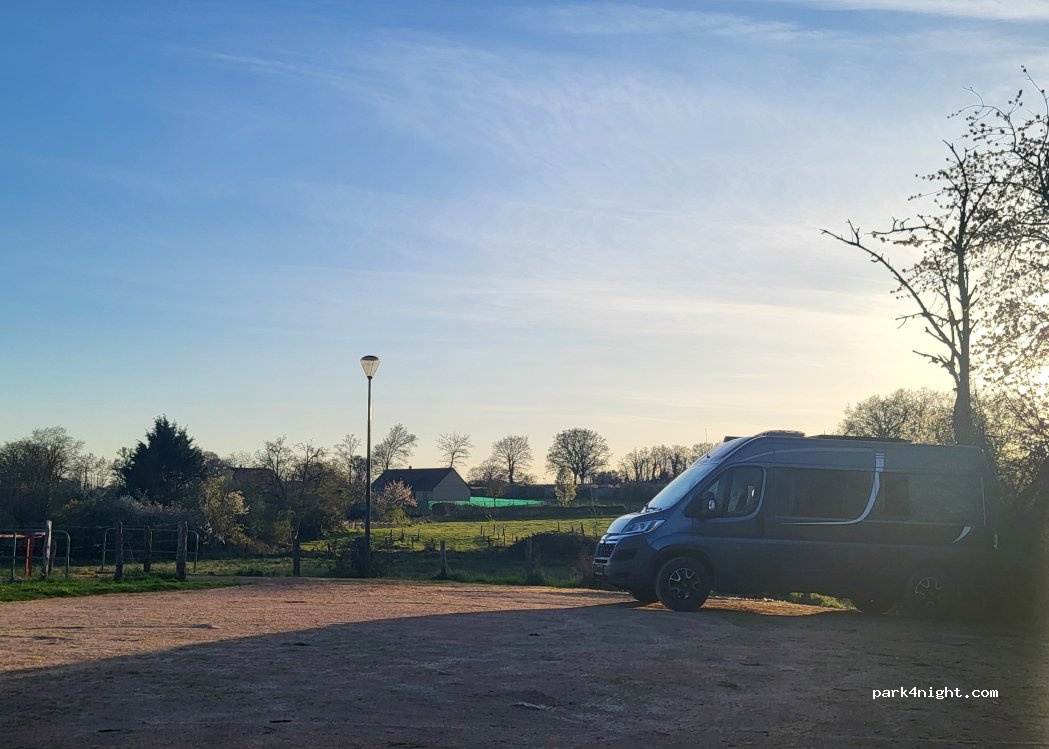 aire sympa, en bordure de champ. éclairage publique jusqu'au petit village . grands espaces de stationnements. impeccable. merci