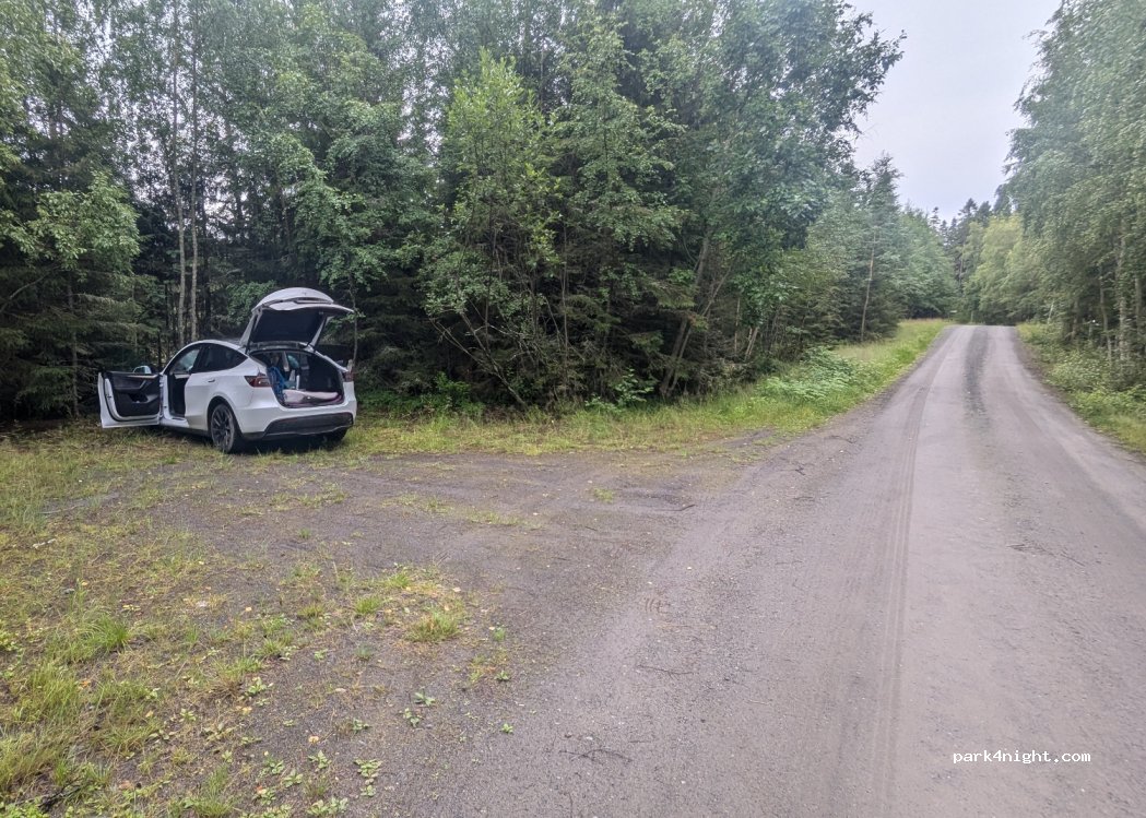 Endroit parfait pour les amateurs de moustiques. Sinon place de parking à côté d'une route de gravier très calme. Assez pour une nuit tranquille, mais sans plus