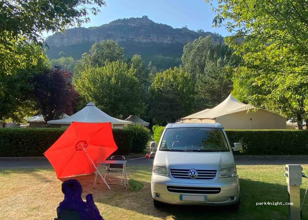 Turned up 10/7/25, spaces left for camping car. 4 on grass and nicely shaded. €25.66 per night with electricity. Lovely village. Great hot free flowing showers. Toilets with seats as paper. Popular with families. Cabins. About16 spaces for camping cars. This includes about 6 for tents. Highly recommend. Great brewery by the Carrefore.