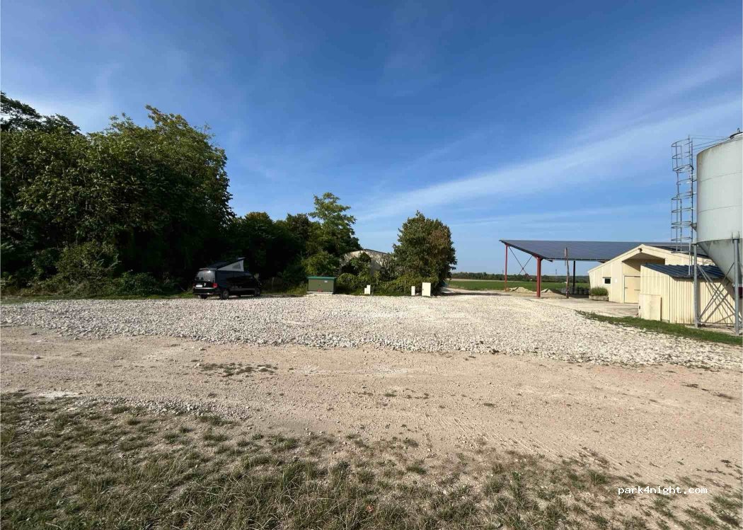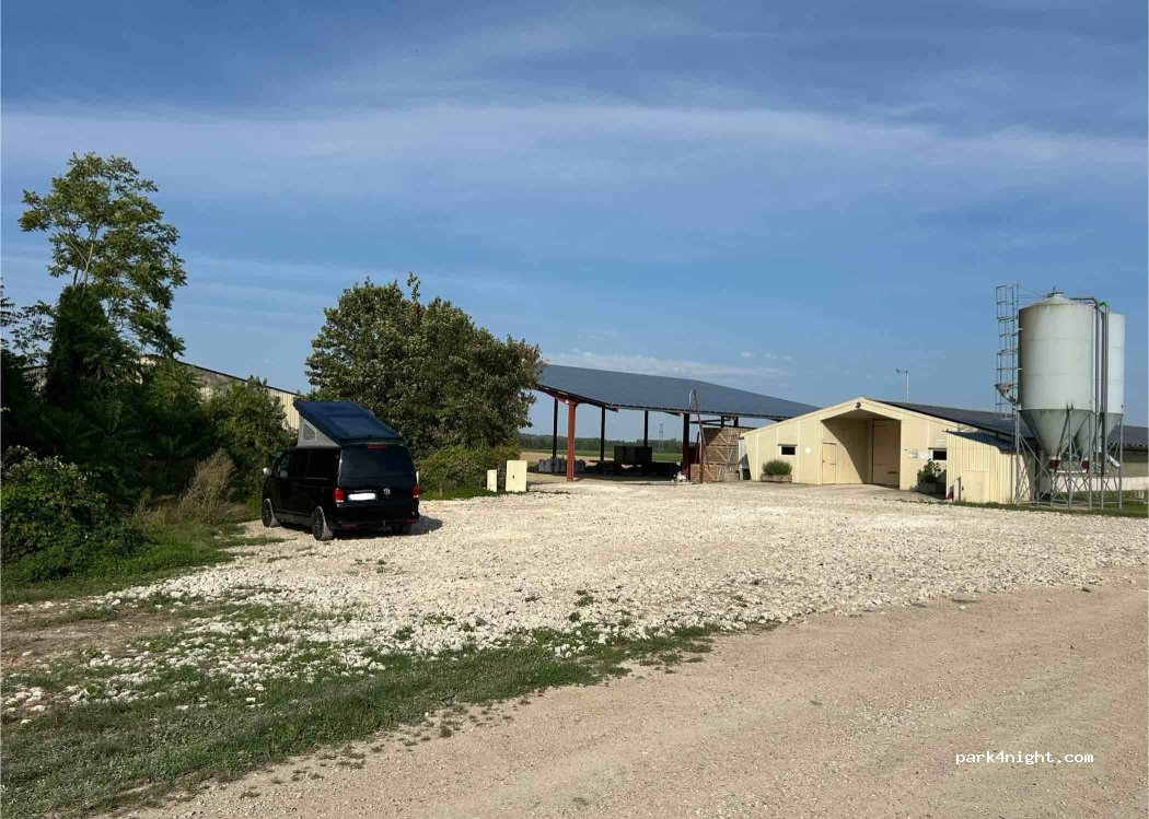 I am a farmer and I make the courtyard of my shed available to passing backpackers. Access by the small road coming from the RD944, only in the direction Châlons-en-Champagne => Reims (turn around at the next roundabout if you are coming from the other direction). Arrival possible at any time. Please respect the premises!