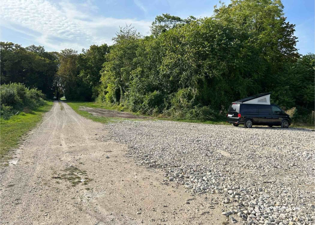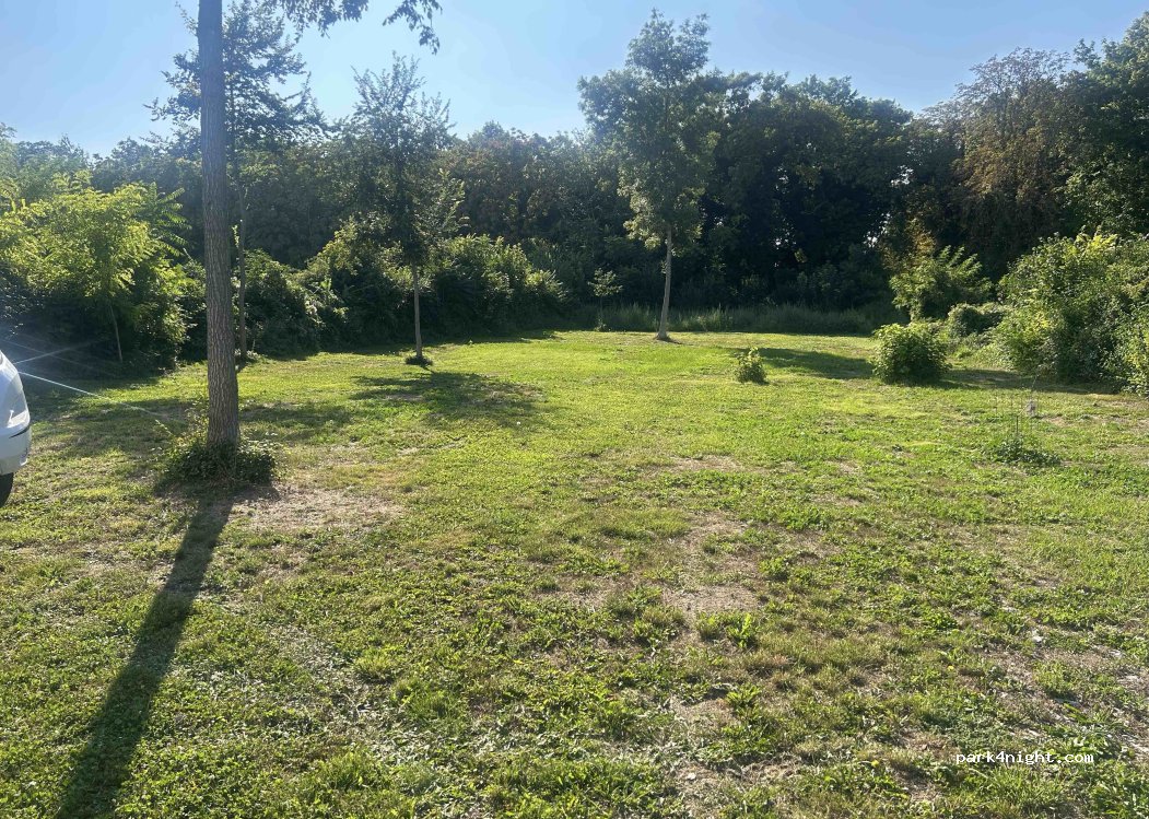 Nous y avons séjourné la nuit dernière en camping car. Merci pour la mise à disposition dernière ce parking! Nous nous sommes installés sur la gravier ne sachant pas si nous pouvions nous installer dans le verger… néanmoins l’autoroute passe à proximité et les train! Avec des Klaxons de trains en pleine nuit