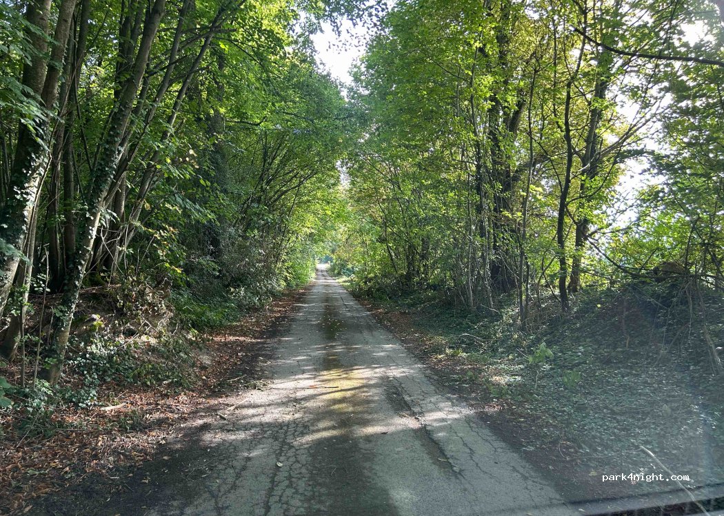 What a fabulous place. Approached up a small road, this lovely farmer allows park up for the night on his land near the barns (I parked just by the low barn building). There is a beautiful apple orchard with a bench and table for the sunny days and although there is a small amount of road noise during the day, I wasn’t disturbed at all at night. Trains run past in the distance but no problem.