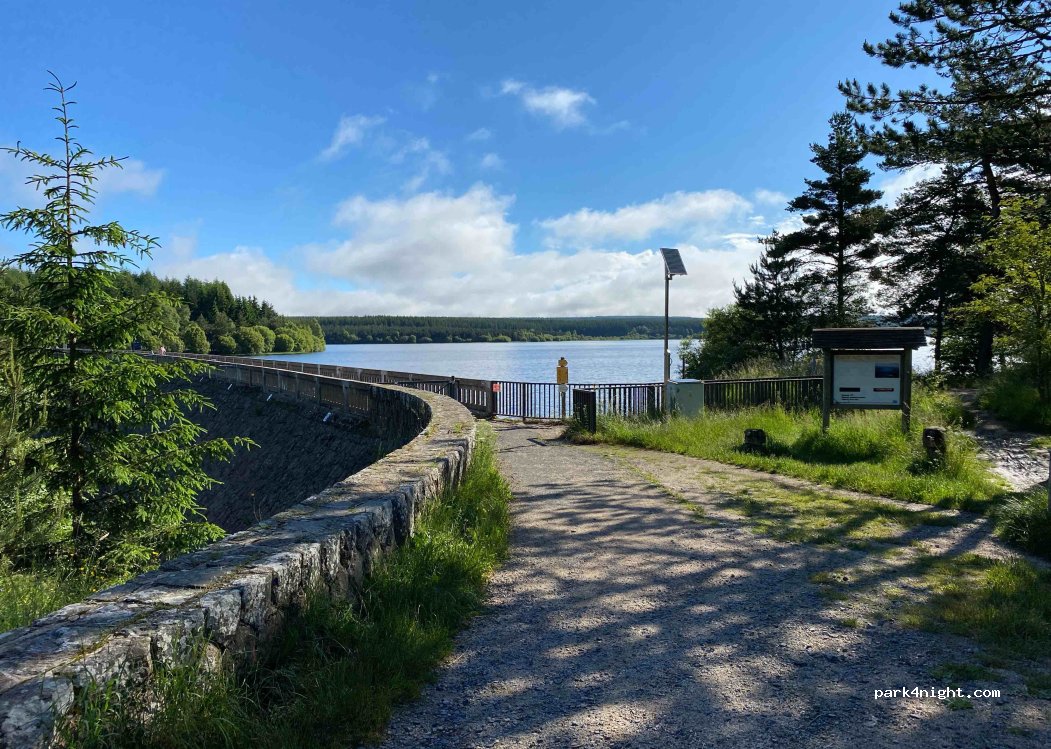 Sommes posés au 1er parking car celui des camping-cars est en contrebas au milieu des arbres donc pas terrible. Balade autour du Lac de 8,7 km. Dommage pour nous car temps pluvieux et grand vent. Beaucoup de pêcheurs.