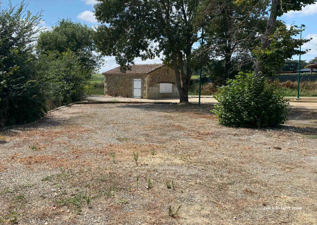 Petit parking tranquille. Ni interdiction ni barre de hauteur. Piste jeux de boules.