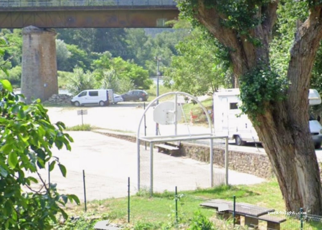 Parking area on the banks of the Tarn, under the bridge, for small van or van. near the listed village. Good restaurant (reservation recommended) or just for a drink. castle to visit.