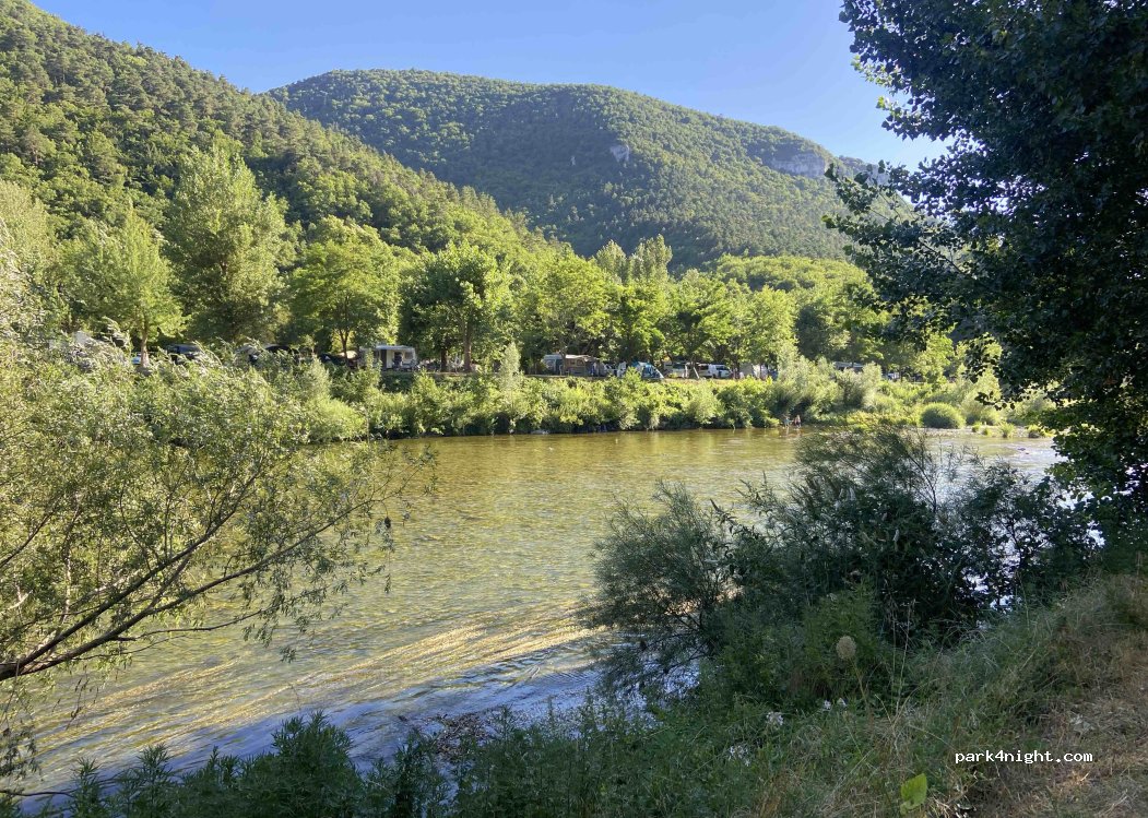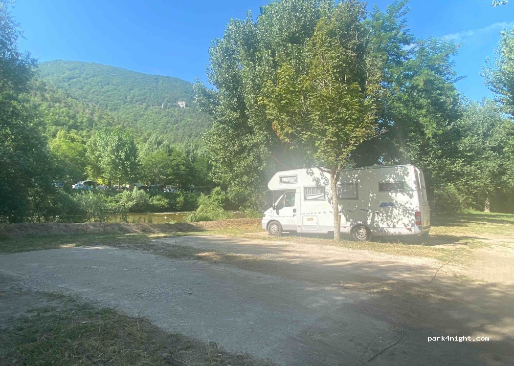 Camping Car Park. Formerly a municipal campsite in Mostuéjouls. No toilets. Very decent shaded pitches on packed gravel and earth. On the banks of the Tarn River. Hostel right next door.