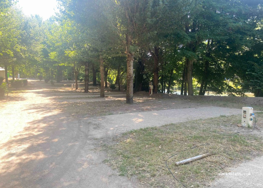 Ici déception totale au point de vue sanitaires .Rien, pas d'eau .Seulement à la borne les services habituels. Autrement,bien ombragé idéal par temps chaud. Accès pour l'entrée et sortie assez problématique pour les grands c.cars.