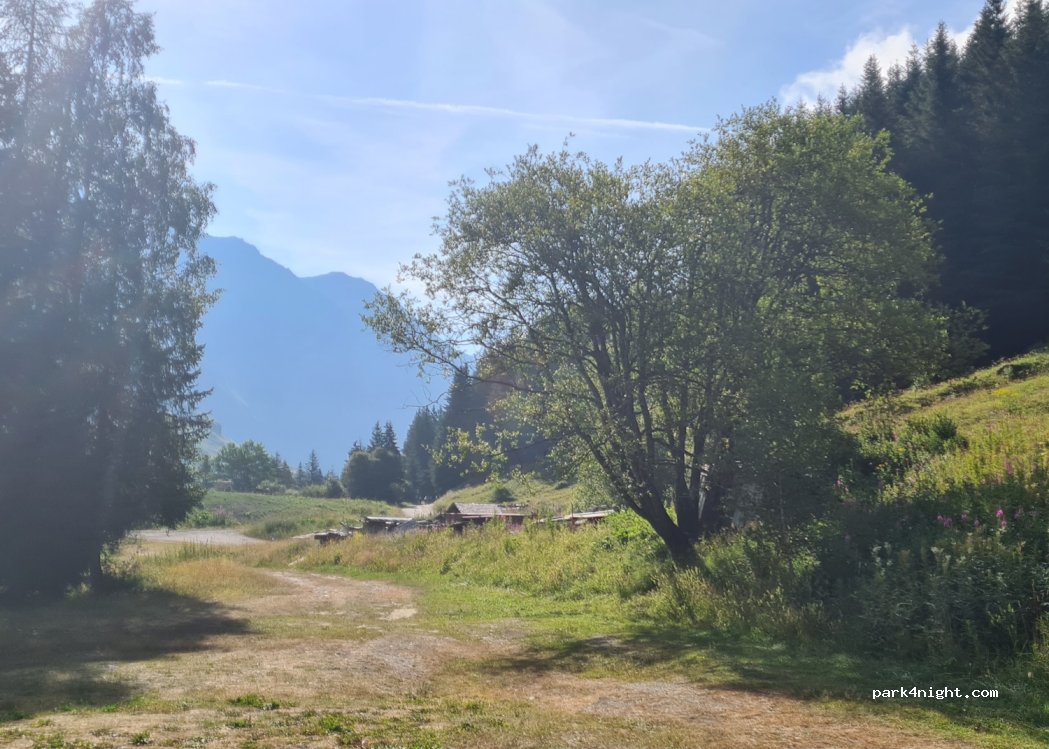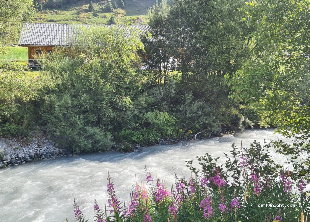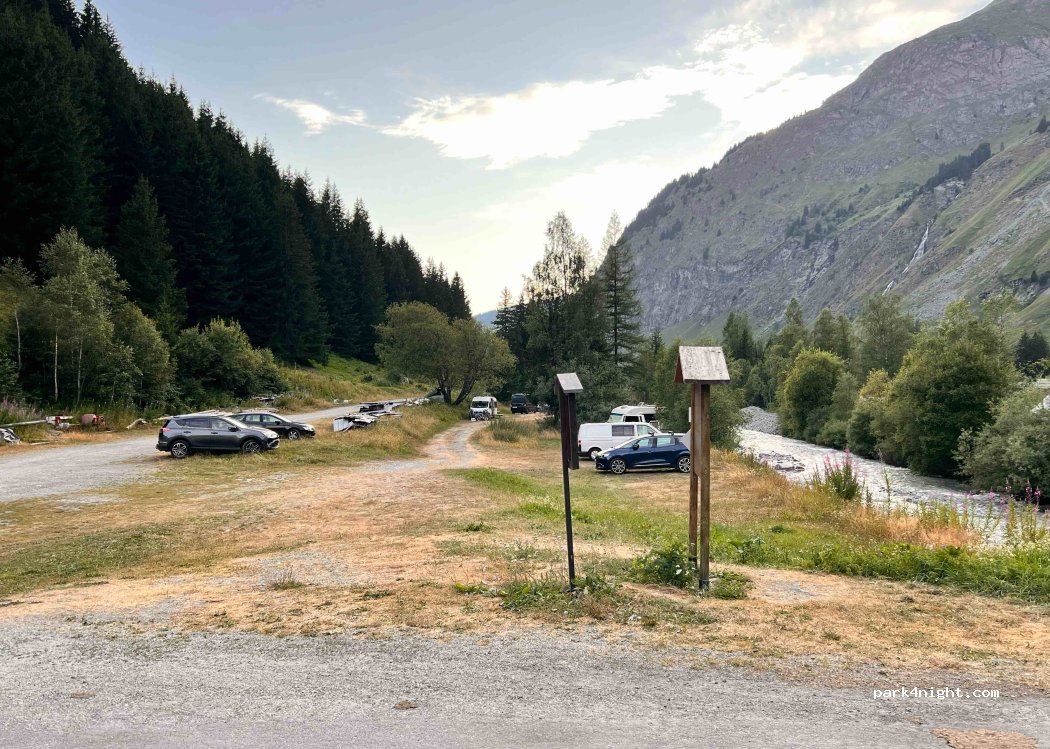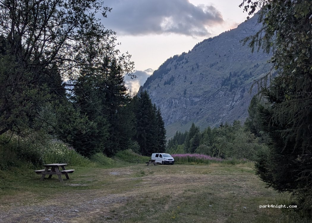 trop de monde ici, on a poussé 100m plus loin, petit spot avec 1 table de pique nique, possible de stationner 2 véhicules, superbe nuit au son de la rivière, à l'ombre d'un grand sapin au réveil ! seul inconvénient : pas mal de mouche la journée. d'autres spots tout le long de la route, pas de circulation la nuit.