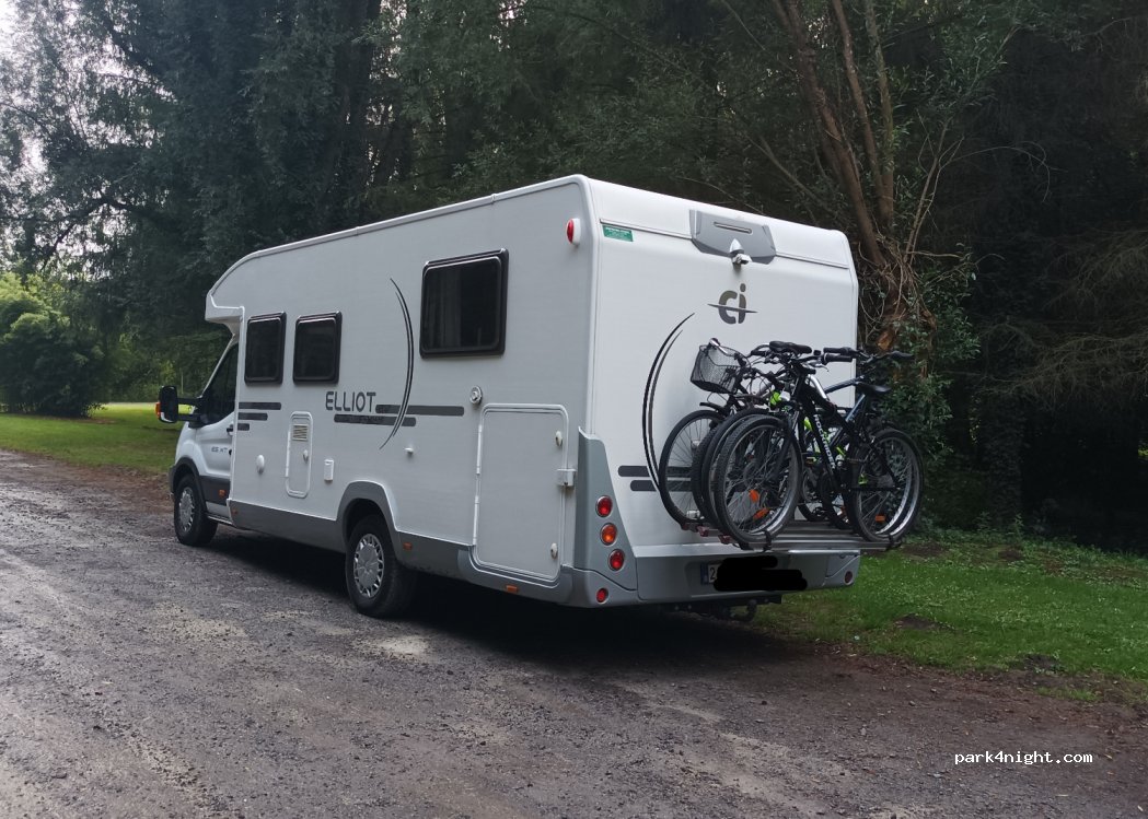Estacionamiento cerca de una masa de agua muy bonita y tranquila, perfecta para una parada de una noche. Algunos coches aparcaron allí por la mañana, pero por lo demás no hay ruido.