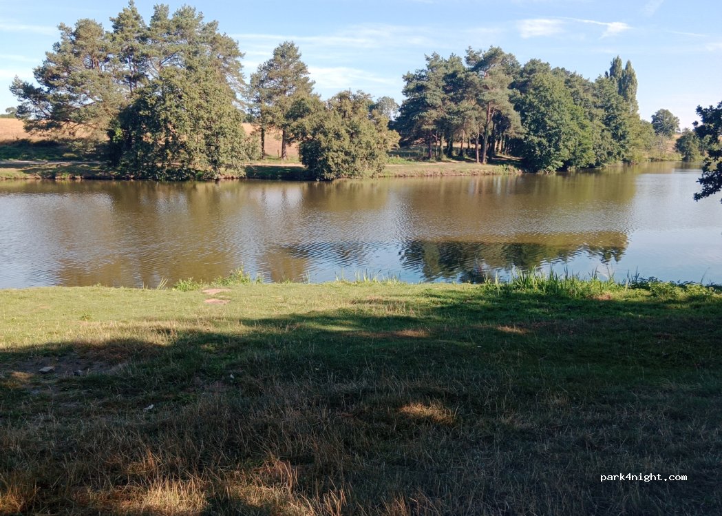 Spot au calme face au lac, pêcheurs uniquement le jour.Plusieurs tables de pique nique et différents endroits où se poser.Nous y avons passé une nuit très calme,malgré la route un peu plus loin.