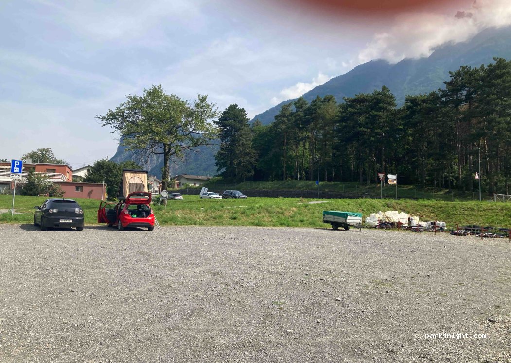 A côté de la caserne des pompiers, possible départ en trombe des véhicules (comme cette nuit), mais sans sirène. Bruit de voiture, au loin, constant, en lien avec l’autoroute et route à proximité. Terrain pas très plat mais pas problématique. Jolie balade le long de la montagne et départ de randonnées. Parking pour la visite du fort d’Evionnaz.