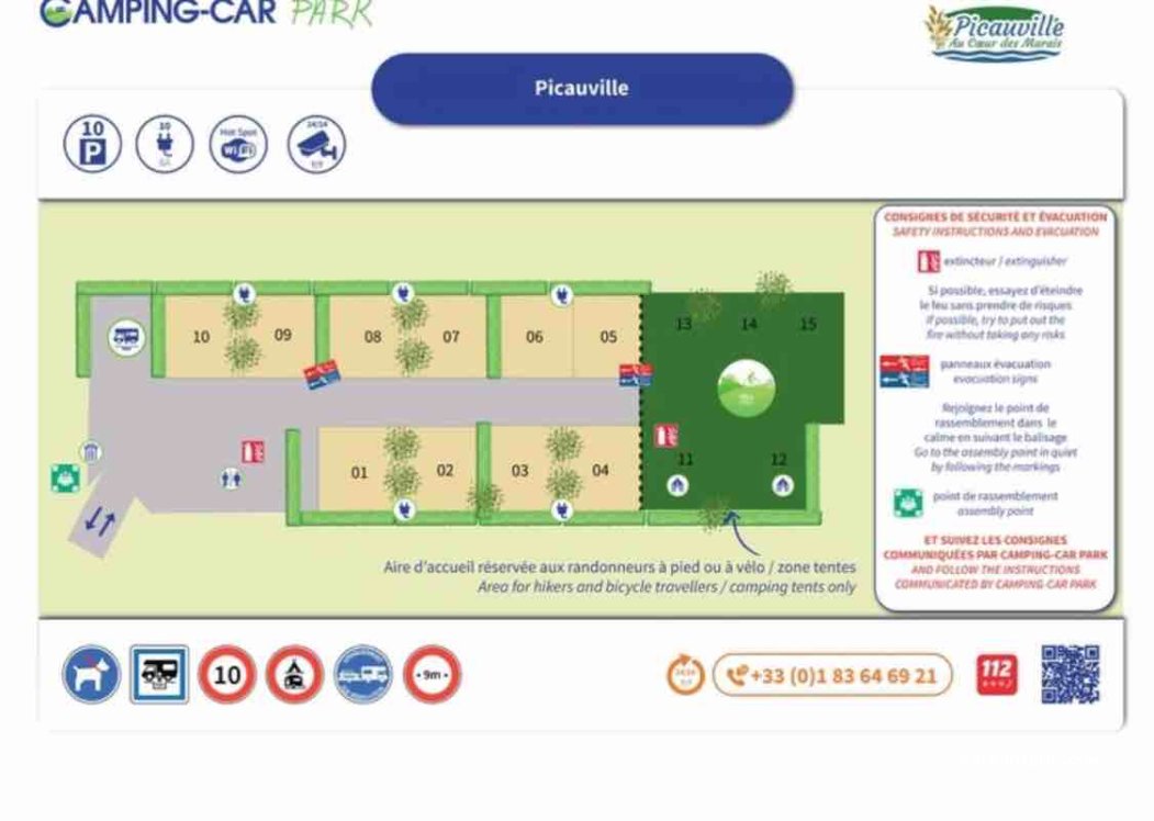 Pour plus d'infos, rendez vous sur le site ou l'application CAMPING-CAR PARK.